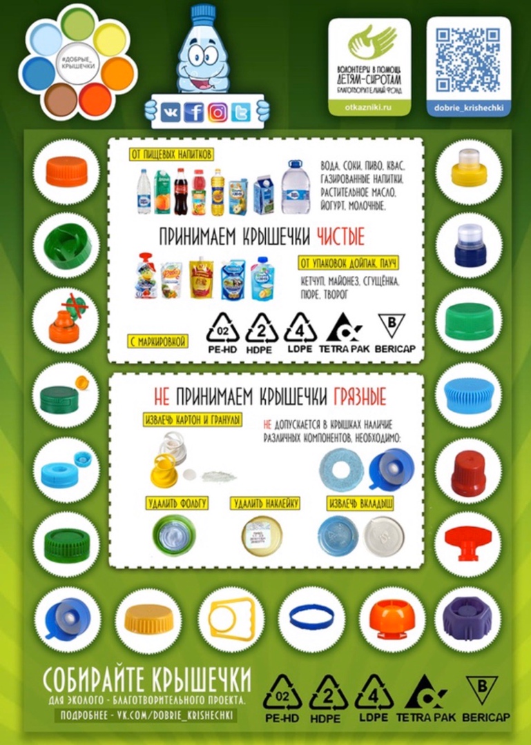 «Добрые крышечки» – это российский эколого-благотворительный волонтерский проект, имеющий двойную цель: сделать наш мир чище и помочь детям, которым нужна поддержка.