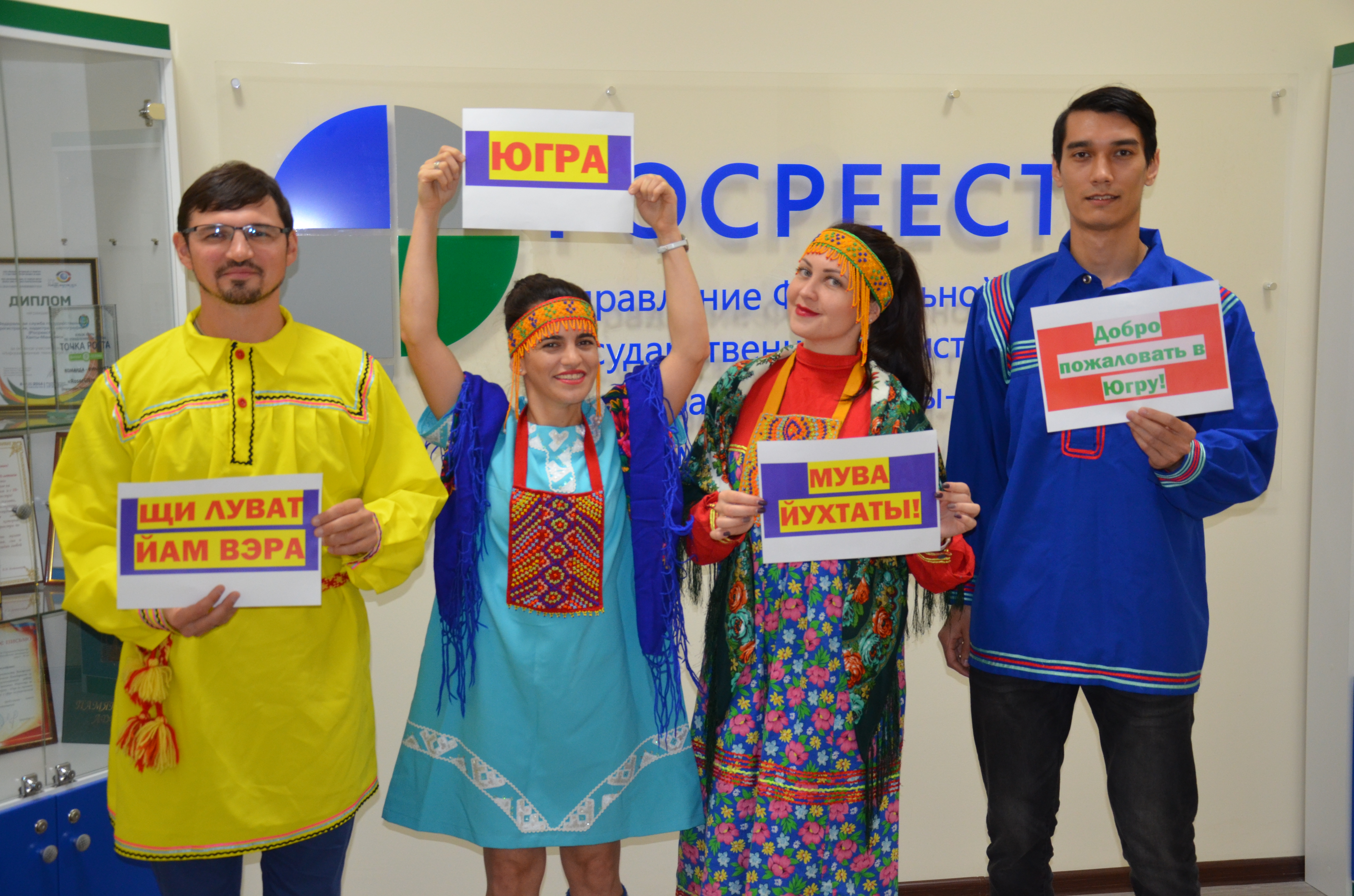 «Многонациональный Росреестр» – проект, возвращающий к корням: кто мы? откуда? В Ханты-Мансийском автономном округе с населением полтора миллиона человек живут представители более 120 национальностей. Малочисленные народы Севера ханты и манси – титульные национальности. И мы все, живущие на этой земле, – немного ханты, «потому что слово «ханты» в переводе – значит «человек». Так писал в своем стихотворении известный хантыйский поэт Владимир Волдин. Людмила Лядова написала музыку к этим строкам, и получилась песня «Ханты».