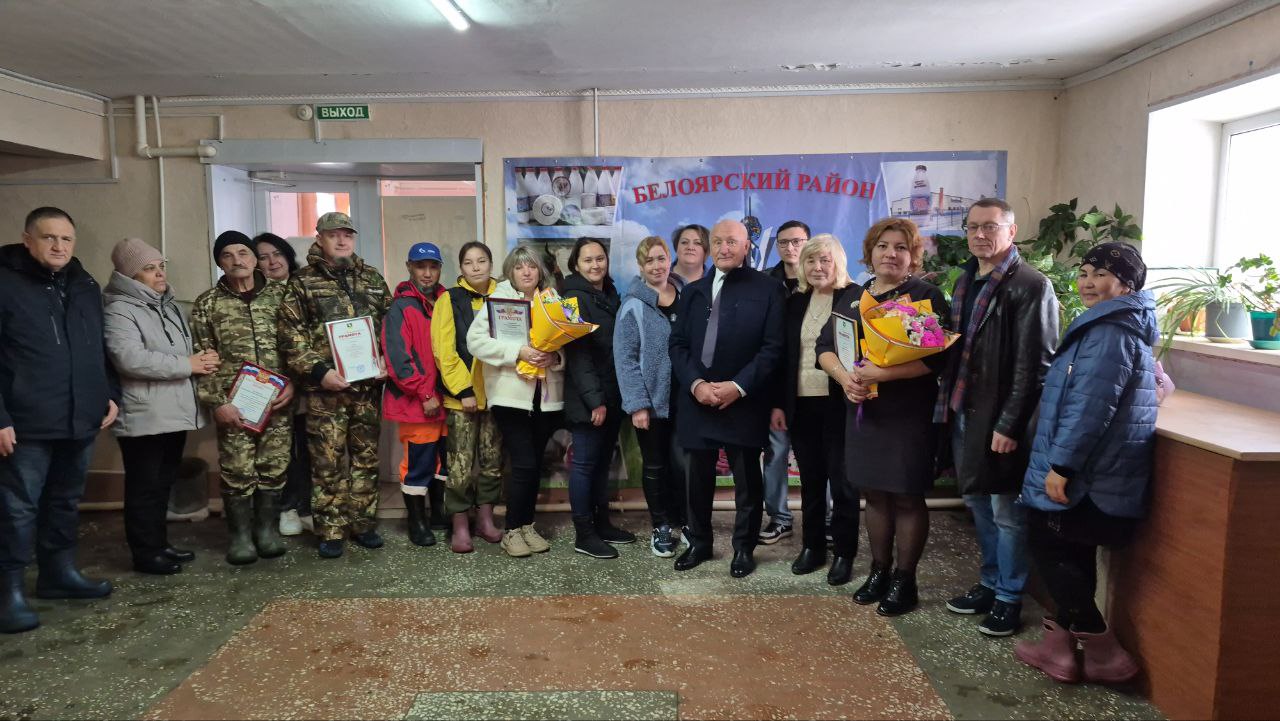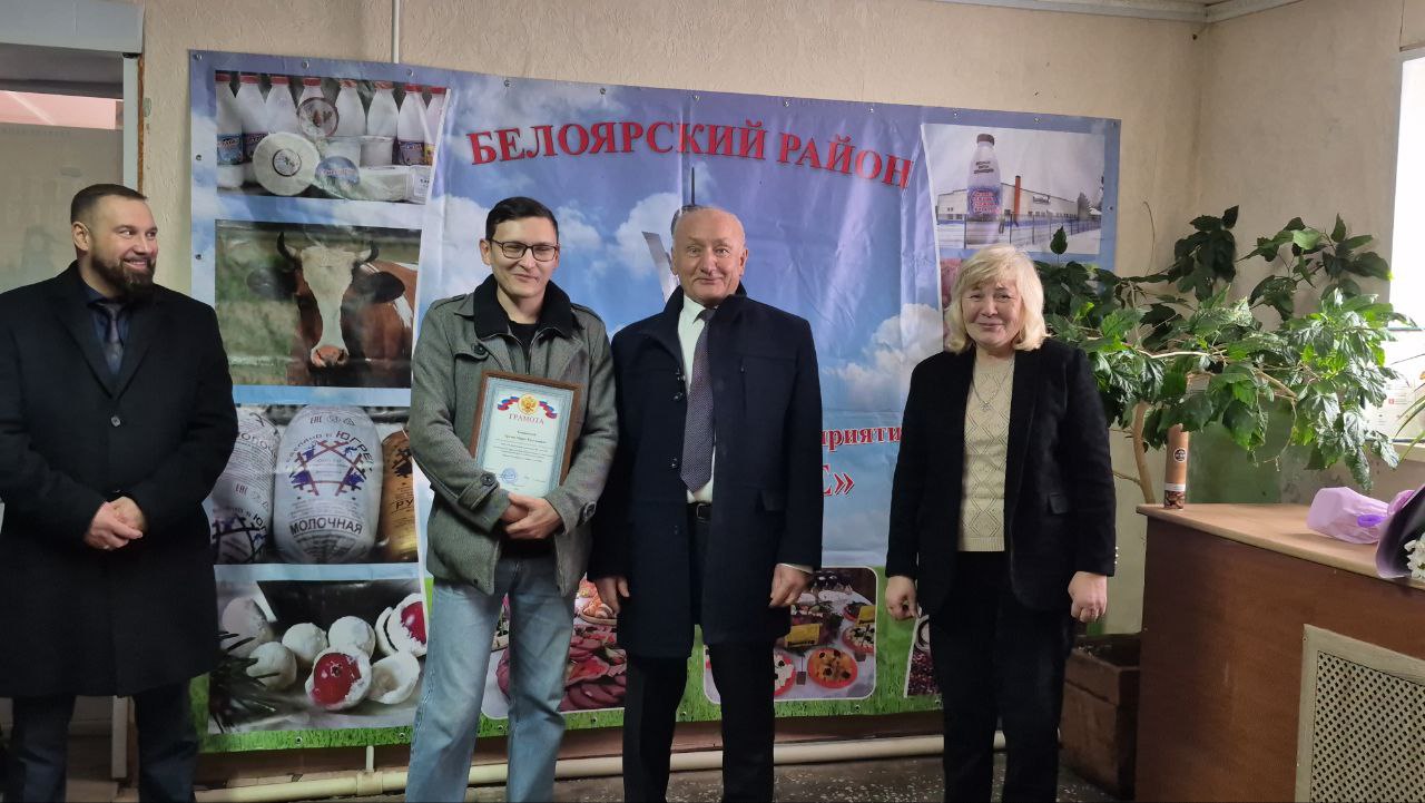 Вместе с директором предприятия Светланой Косулиной провел встречу с коллективом. Поздравил всех работников предприятия с наступающим профессиональным праздником. Вручил Благодарственные грамоты Главы Белоярского района за многолетний и добросовестный труд, высокое профессиональное мастерство оператору приготовления кормов на птицеферме Олегу Орлову и исполняющей обязанности главного бухгалтера Наталии Крюковой.
