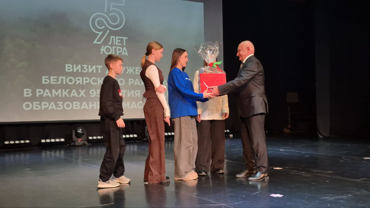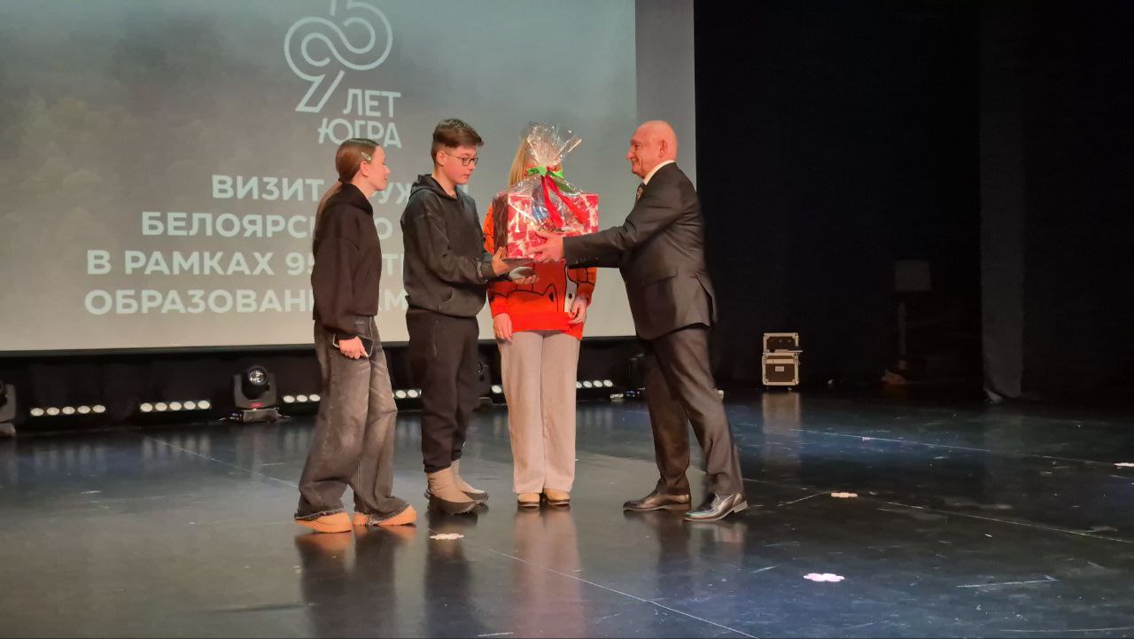 Состоялась концертная программа, где своё мастерство представили творческие коллективы Белоярского района. В торжественной обстановке глава Белоярского вручил продуктовые наборы многодетным семьям участников СВО – семье Черкашиных и семье Смирновых. Выразил слова поддержки и благодарности. Поздравил именинницу Анну Рогачишину, которой сегодня исполнилось 13 лет, подарил памятный подарок – наушники.