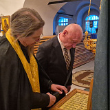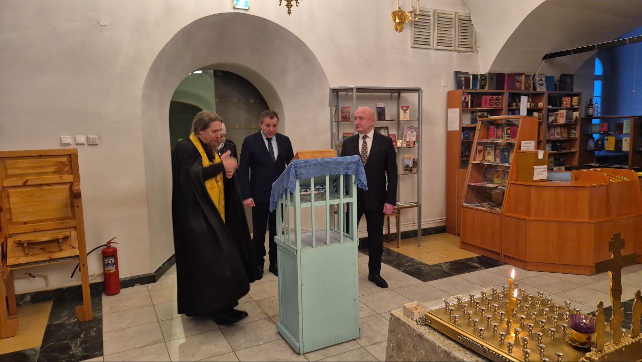 Первая встреча состоялась на территории Свято-Троицкого Кондинского монастыря с настоятелем Свято-Троицкого архиерейского подворья игуменом Алипием.