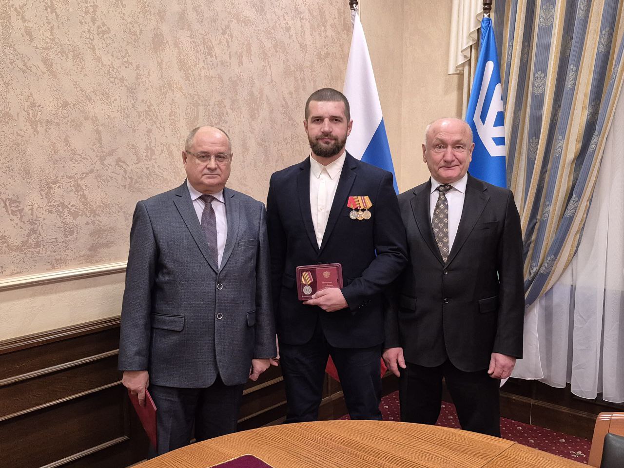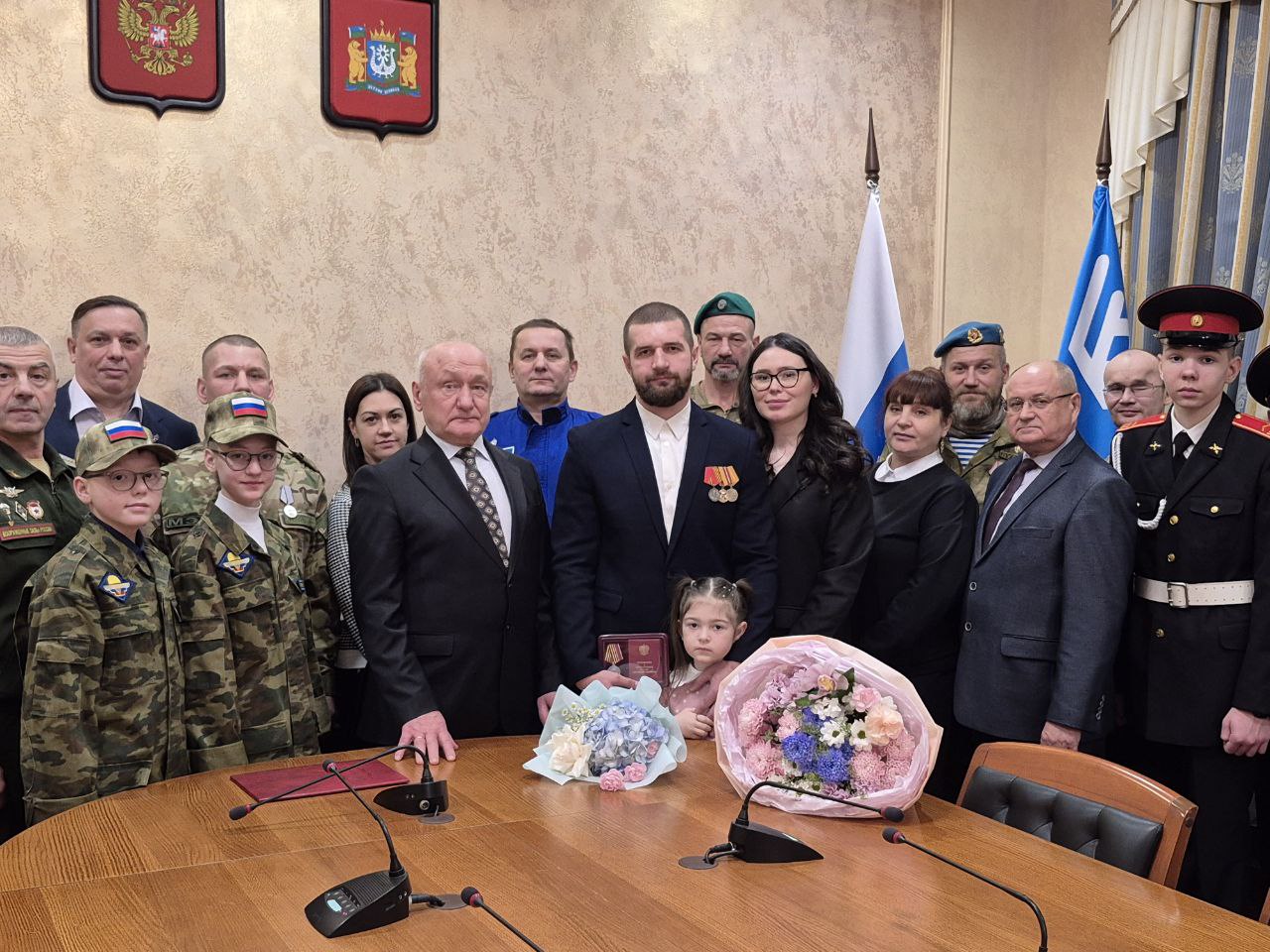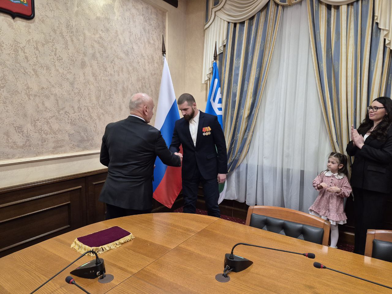 Сегодня глава района в торжественной обстановке вручил государственную награду – медаль «За храбрость» II степени нашему герою, участнику специальной военной операции Виктору Сергеевичу Срабионову.