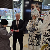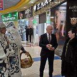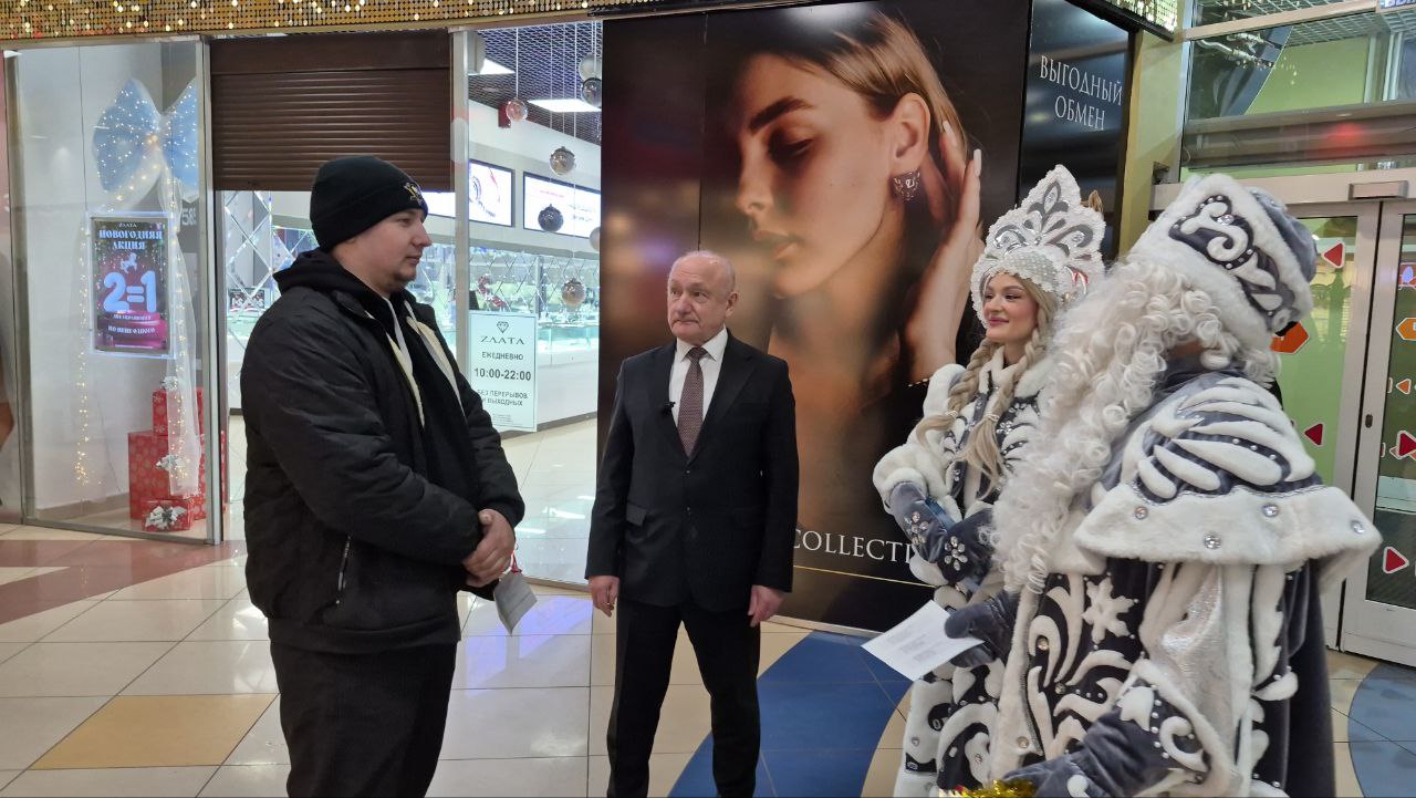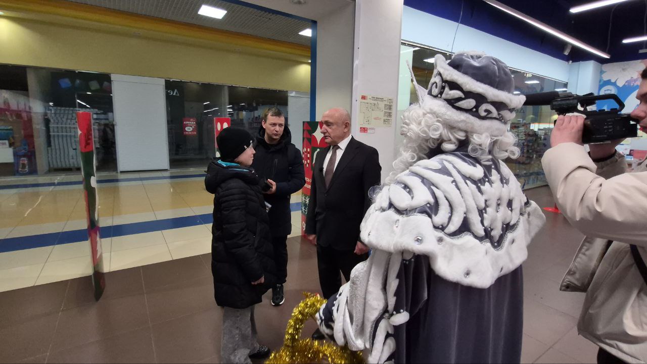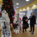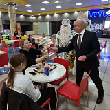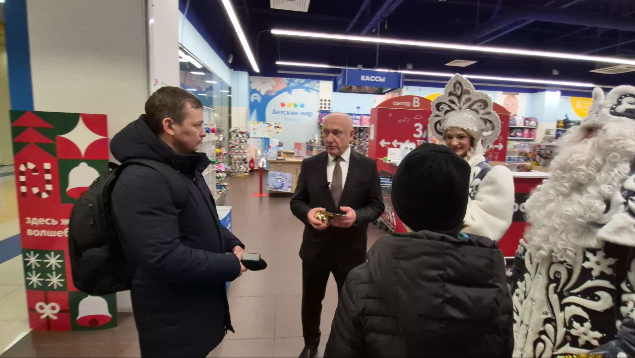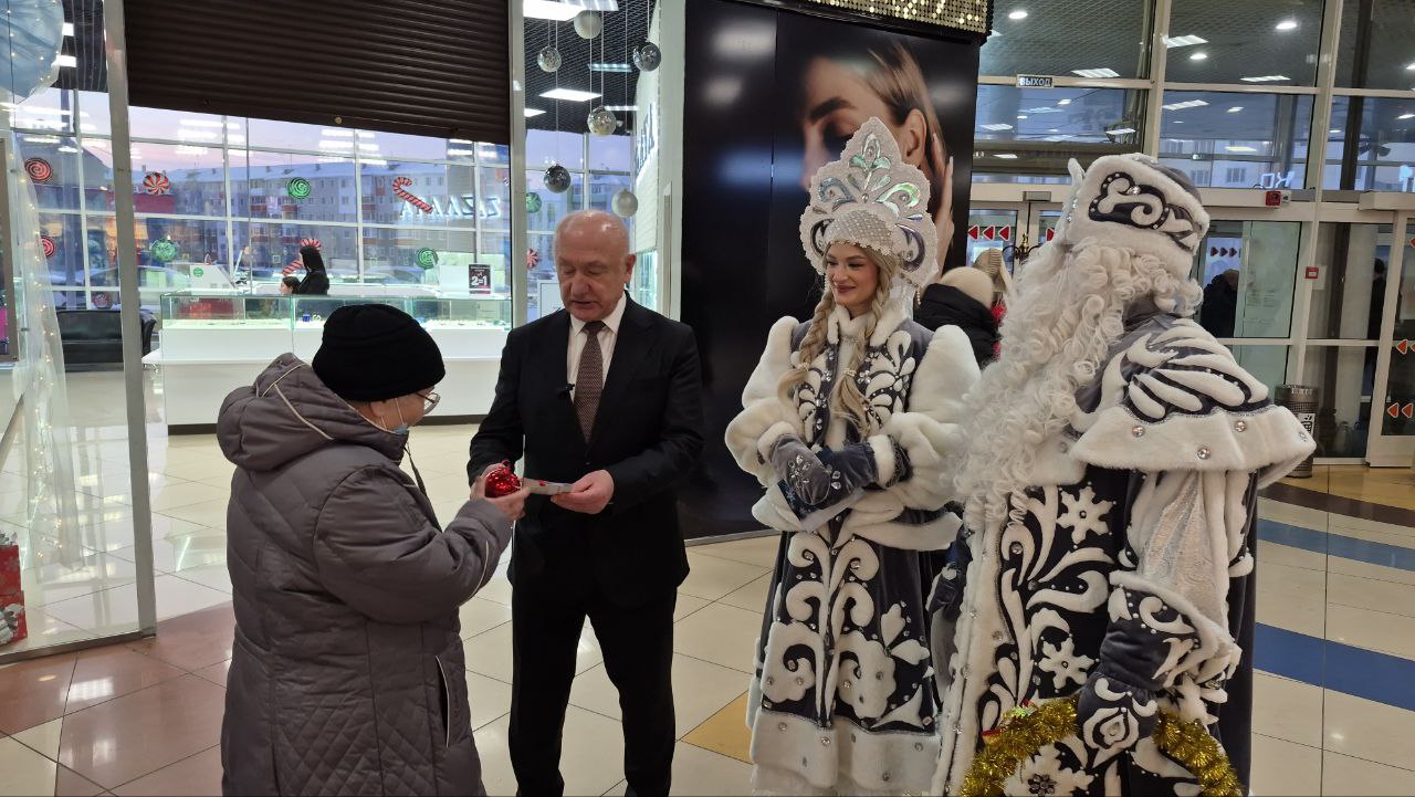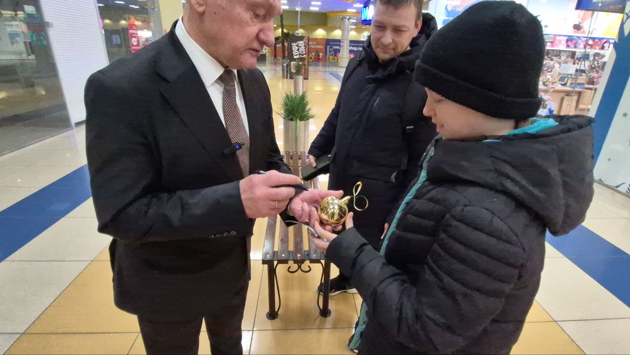 Сегодня, в День дарения ёлочных шаров, Сергей Маненков вместе с Дедом Морозом и Снегурочкой встретился с земляками в ТРЦ «Оазис Плаза» и подарил новогодние шары и пригласительные билеты в кинотеатр «Синема Де Люкс»
