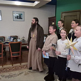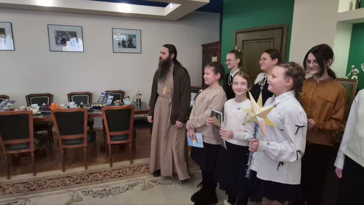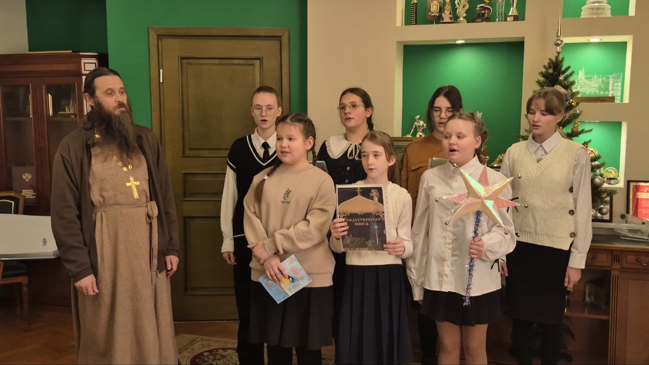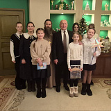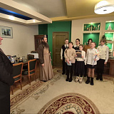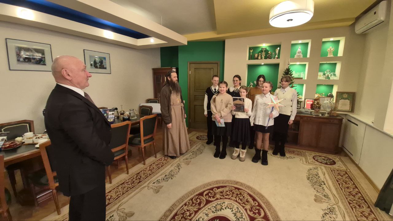 Ребята поздравили главу района с добрым и светлым Рождеством Христовым и старым Новым годом, а также пригласили завтра посетить Божественную литургию в престольный праздник храма.