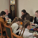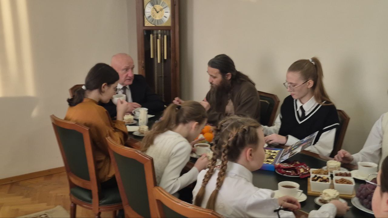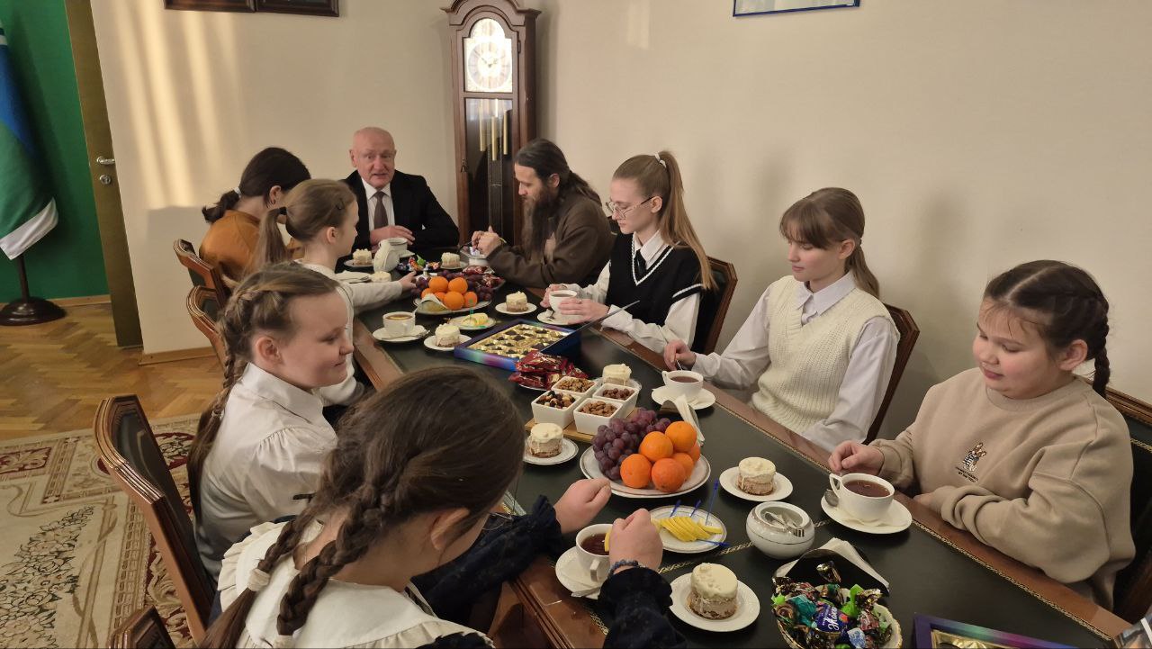 Сегодня глава района встретился с воспитанниками воскресной школы и отцом Вячеславом — настоятелем храма преподобного Серафима Саровского