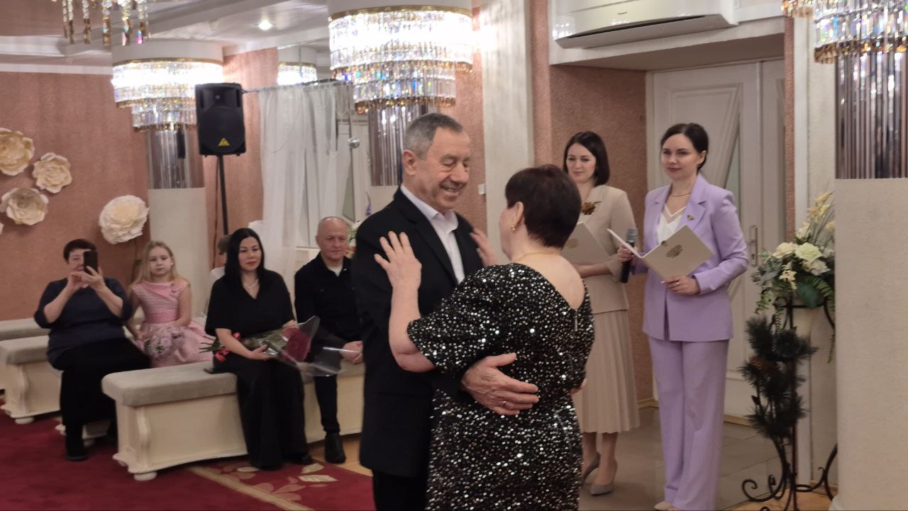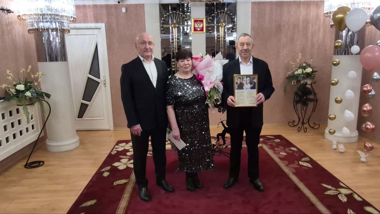Сергей Маненков поздравил семейную пару с «золотой свадьбой» и вручил памятные подарки. Пожелал крепкого здоровья, благополучия, мира, добра и долгих счастливых лет совместной жизни!
