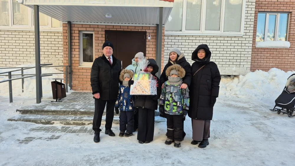 Третьими обладателями заветных квадратных метров стала дружная семья Валеевых. Юлия Валеевна — многодетная мама, воспитывающая троих детей: Лейла — уже третьеклассница в школе №2, а её младшие братья Роман и Дмитрий ходят в детский сад «Сказка». Поздравил Юлию и ребят с новосельем, пожелал, чтобы в новой квартире всегда звучал детский смех, а в доме царили тепло и согласие. Глава муниципалитета вручил детям корзину сладостей, поздравил с этим важным и радостным событием новоселов, пожелал, чтобы в их домах всегда царила гармония, благополучие и достаток.