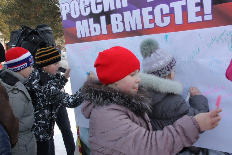 Жители города, представители молодежных общественных организаций и волонтеры приняли активное участие в социальной акции «МЫ ВМЕСТЕ!», посвященной Дню воссоединения Крыма с Россией.