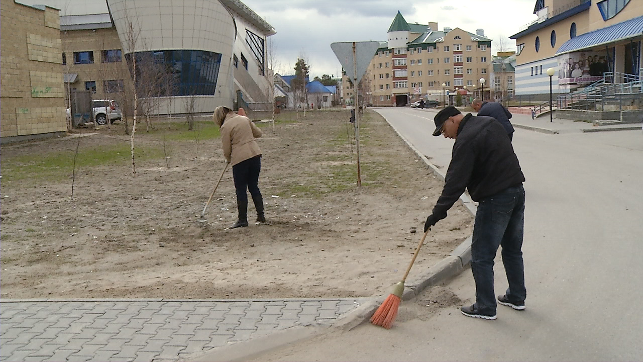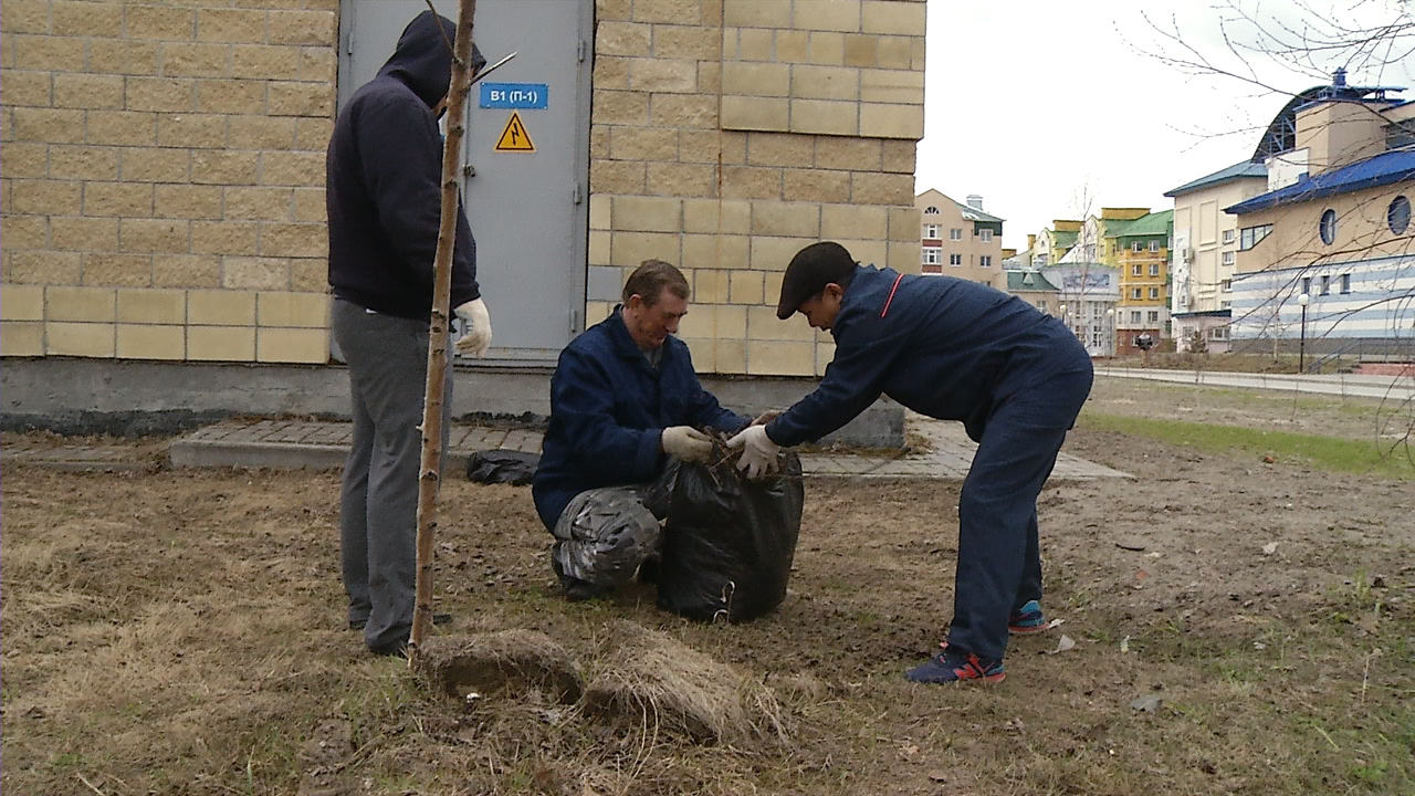 Белоярские служащие вышли на субботник. Во главе с главой района