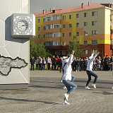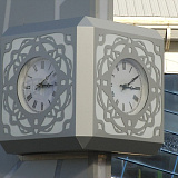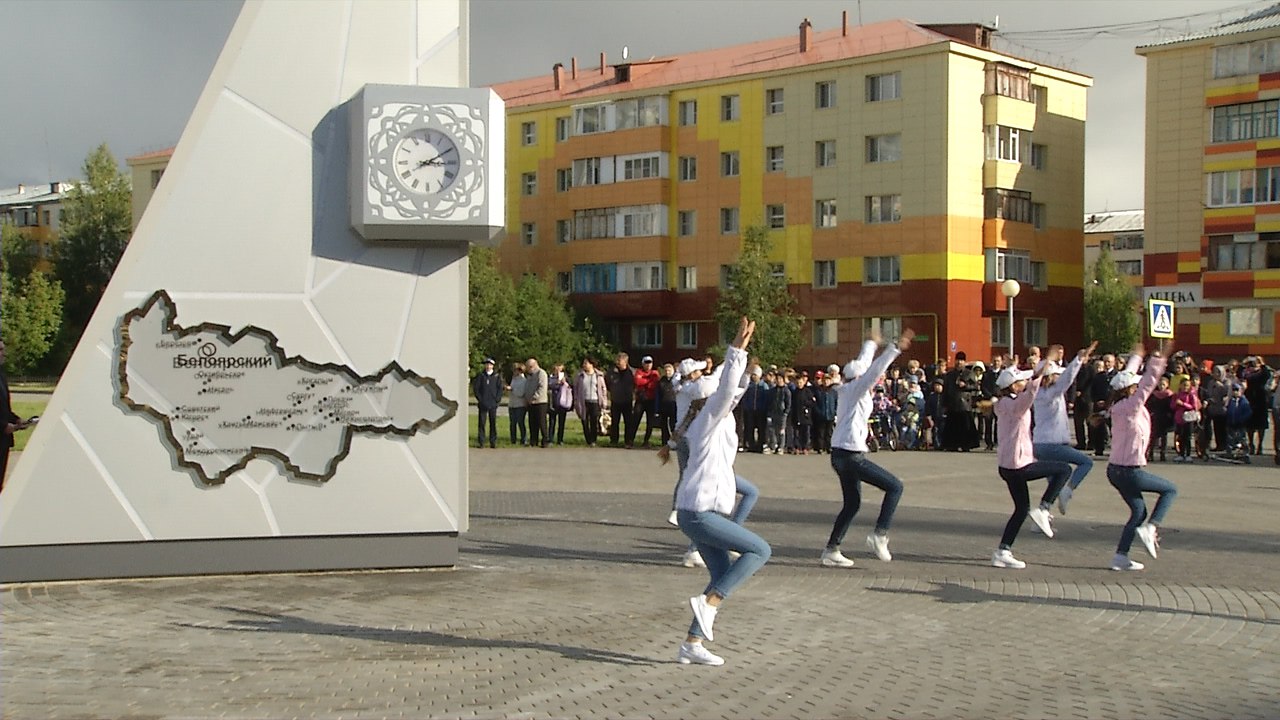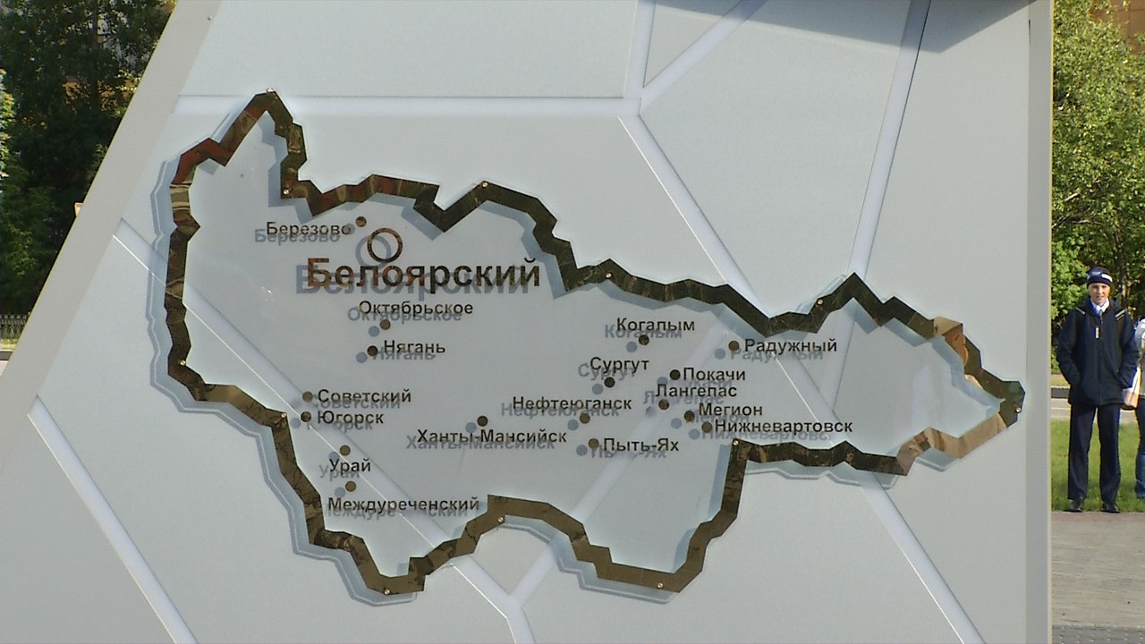 Стела с часами расположилась на месте клумбы около Ледового дворца. Установили ее за несколько дней. С двух сторон на «Льдинке» - две карты: Югры и Белоярского района.
