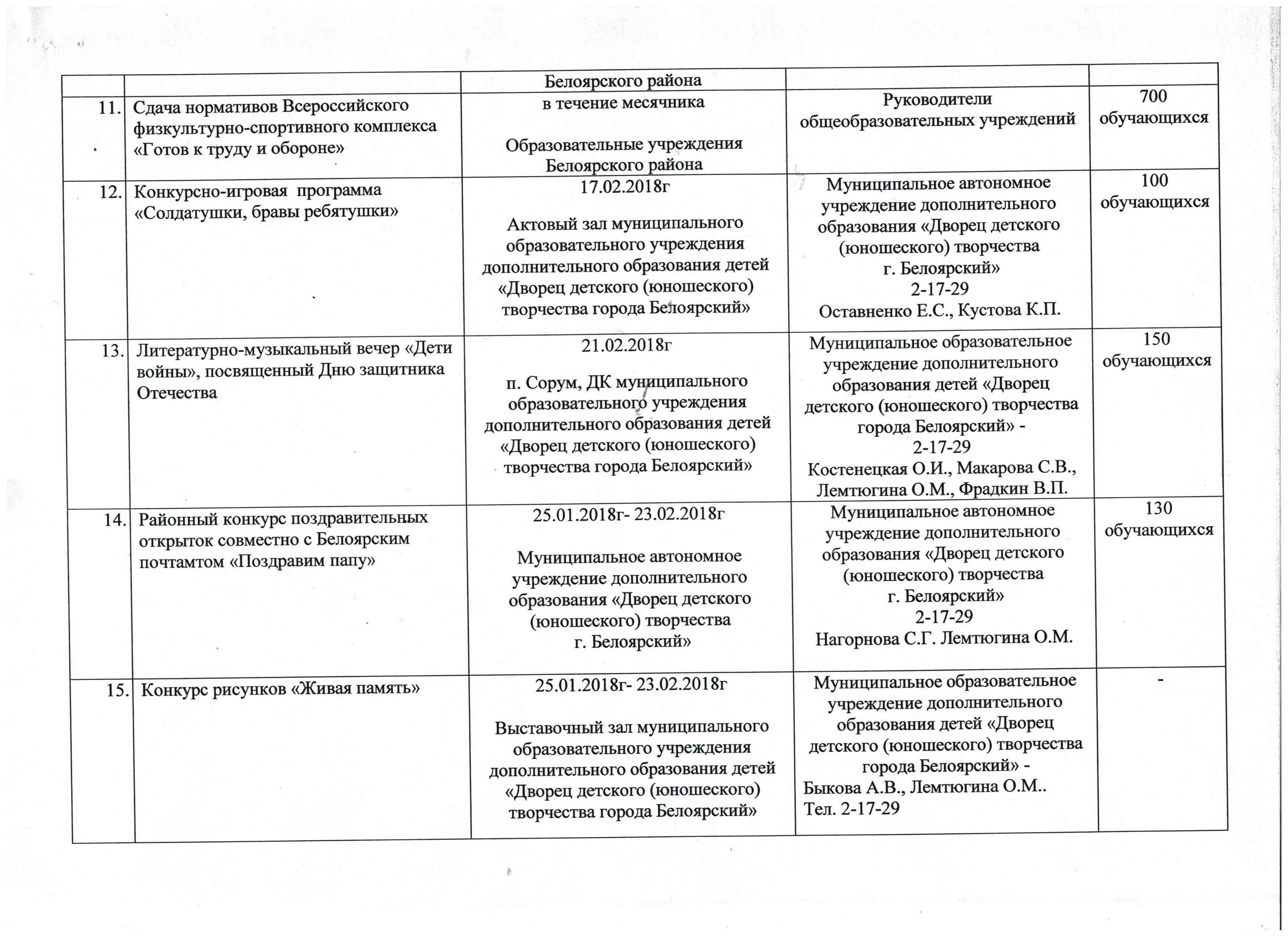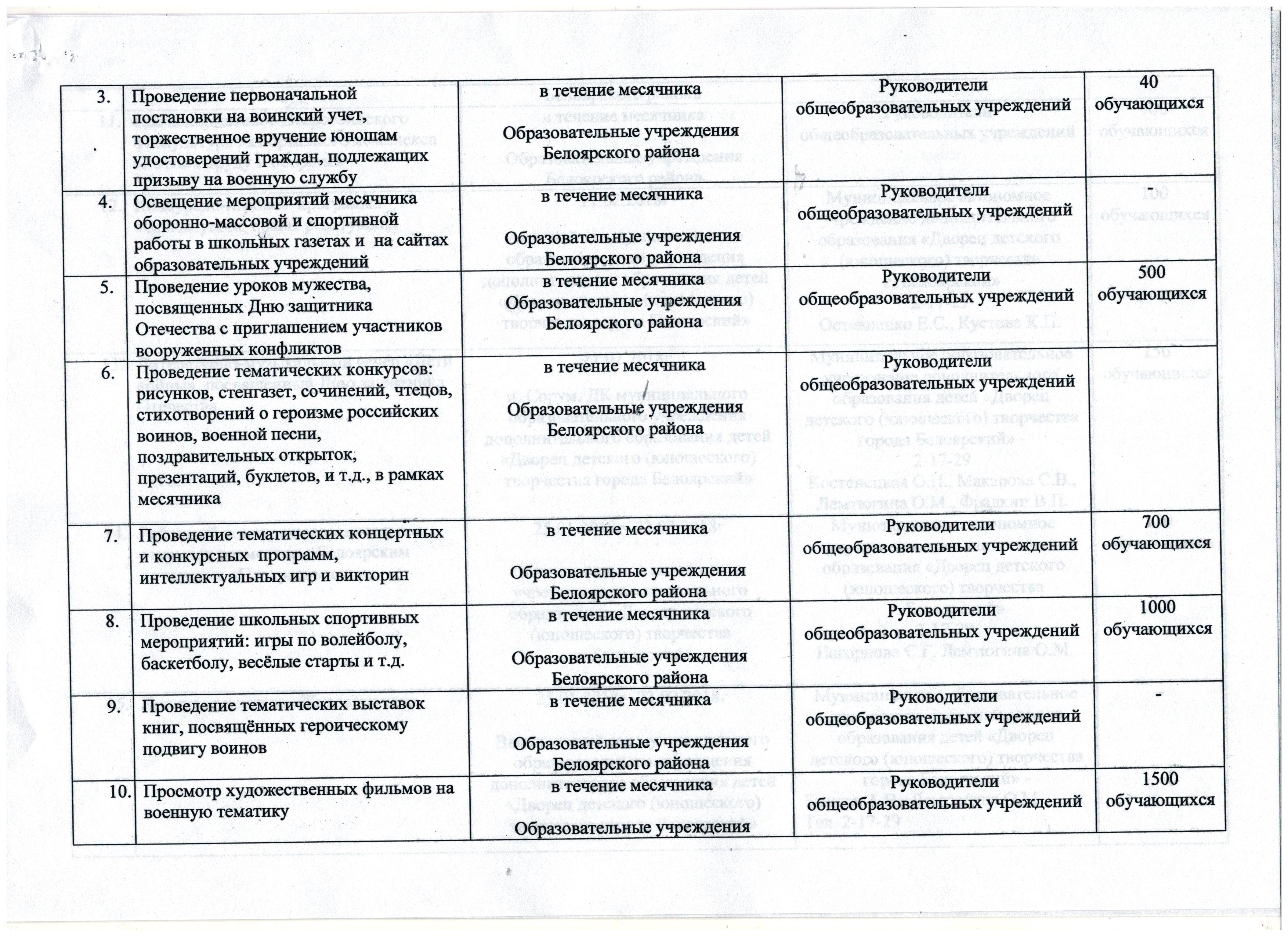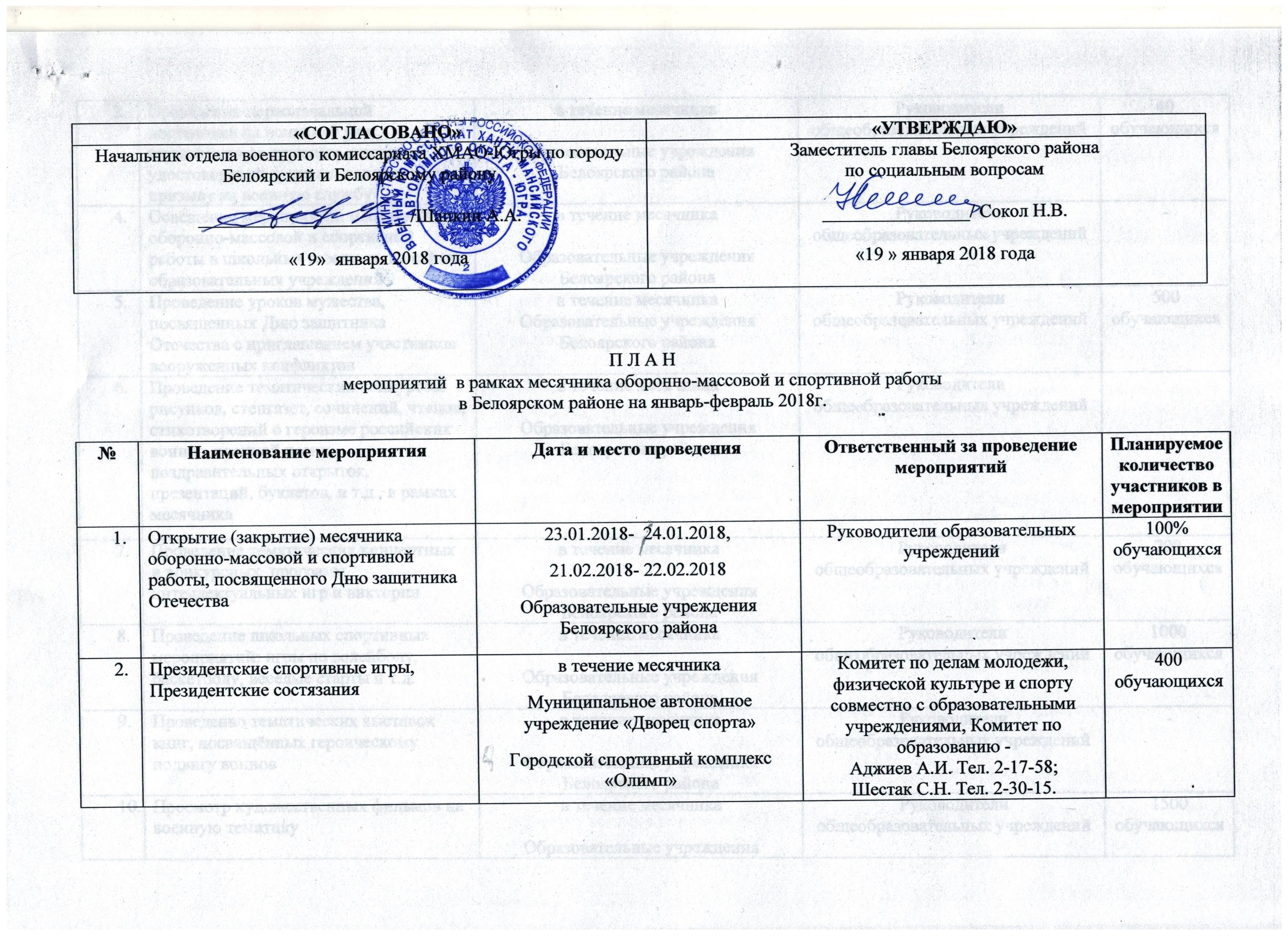 ПЛАН МЕРОПРИЯТИЙ В РАМКАХ МЕСЯЧНИКА ОБОРОННО-МАССОВОЙ И СПОРТИВНОЙ РАБОТЫ В БЕЛОЯРСКОМ РАЙОНЕ В 2018 ГОДУ