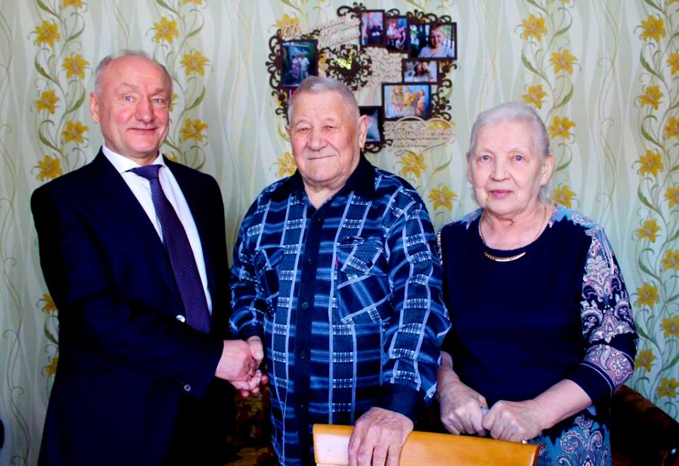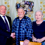 Сергей Маненков, глава администрации Казымского поселения Алсу Назырова и депутат села Сергей Рандымов вручили старожилу Казыма поздравительную телеграмму от главы государства и целый набор подарков.