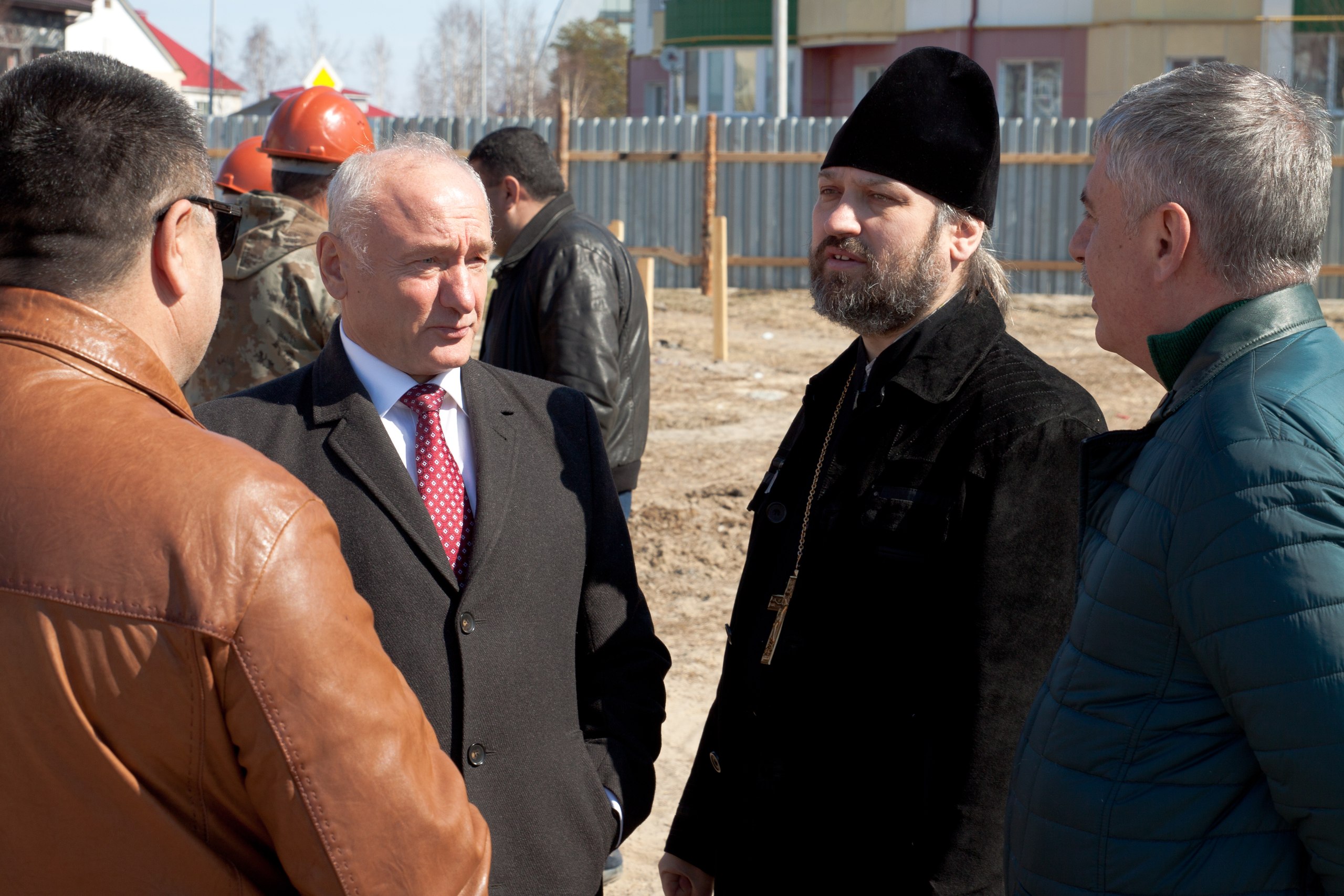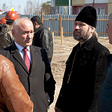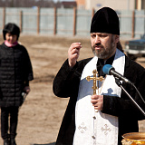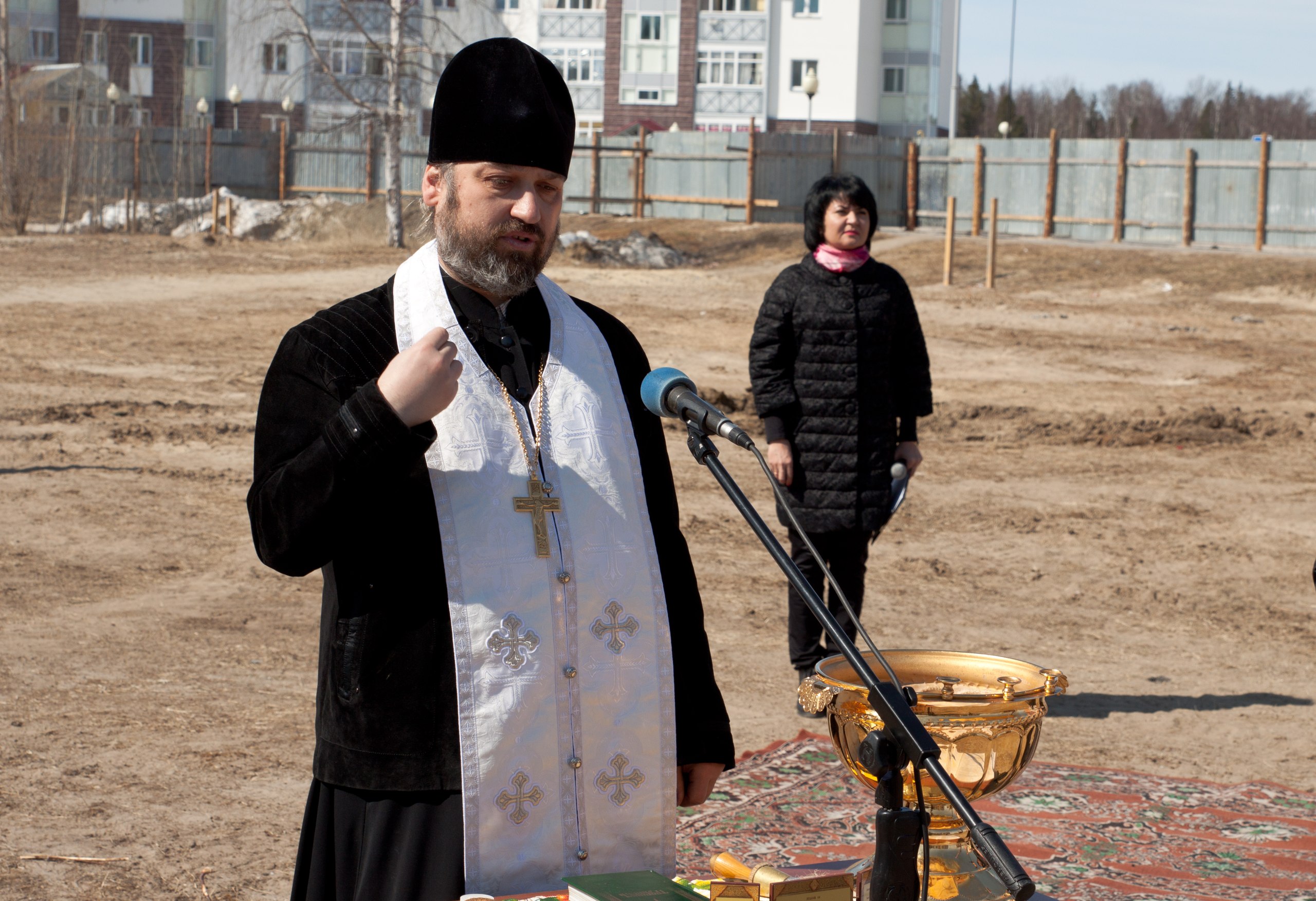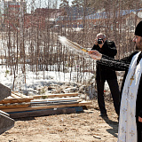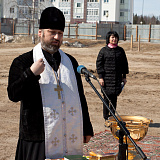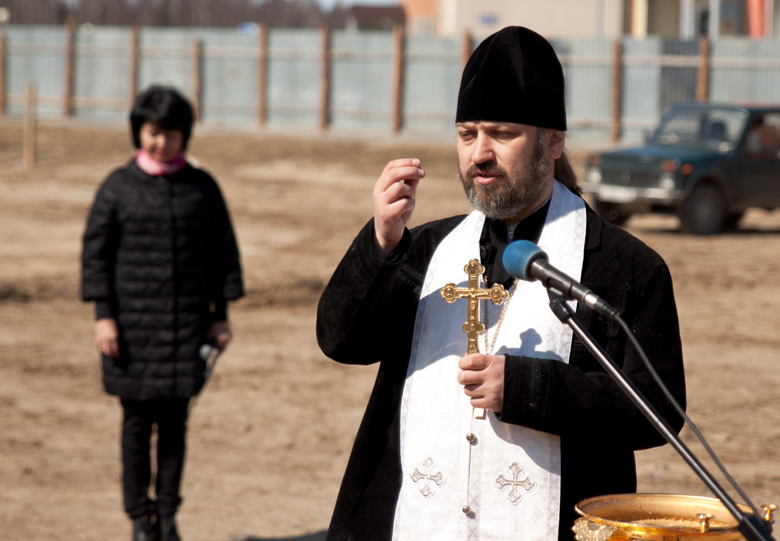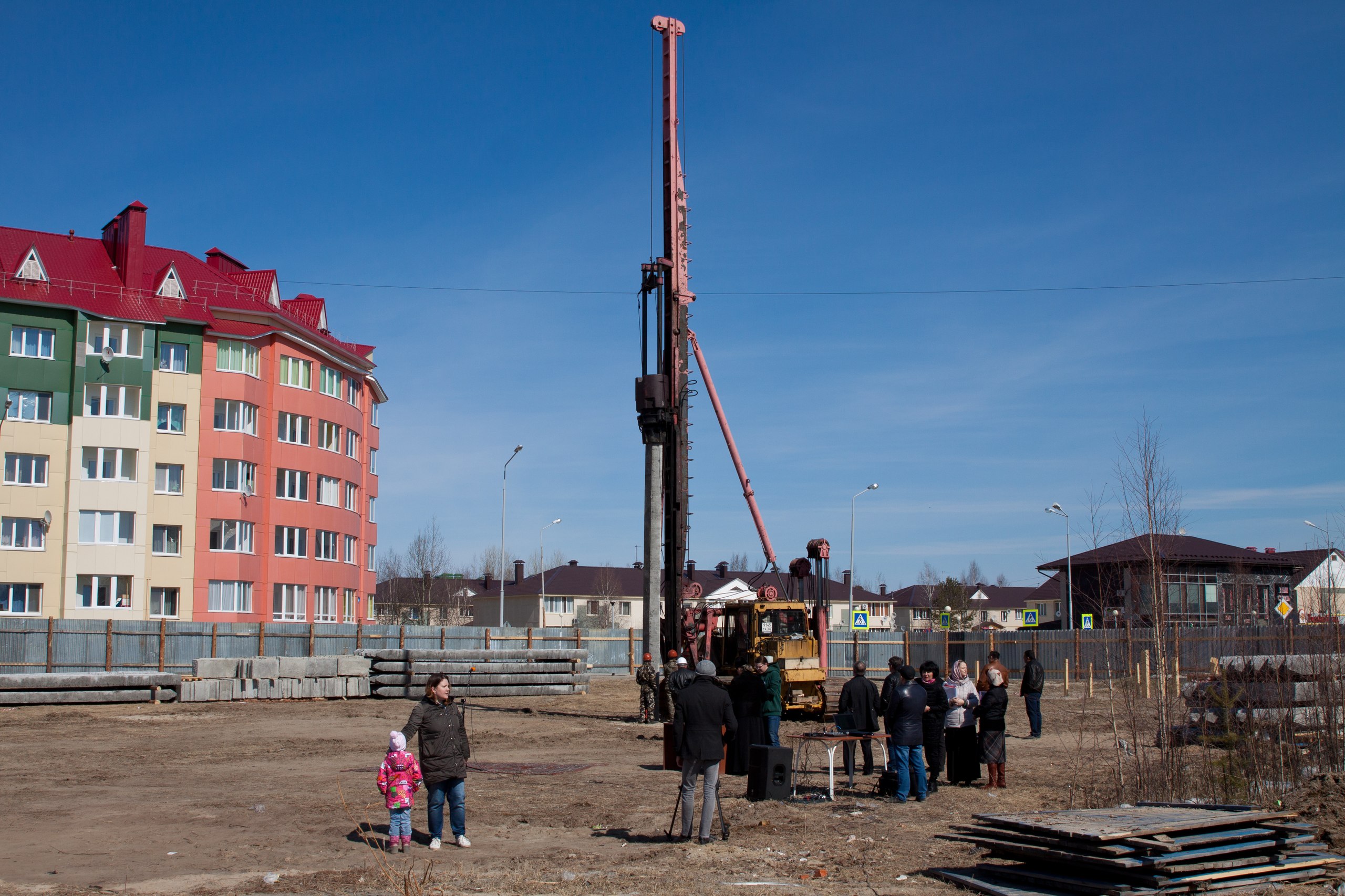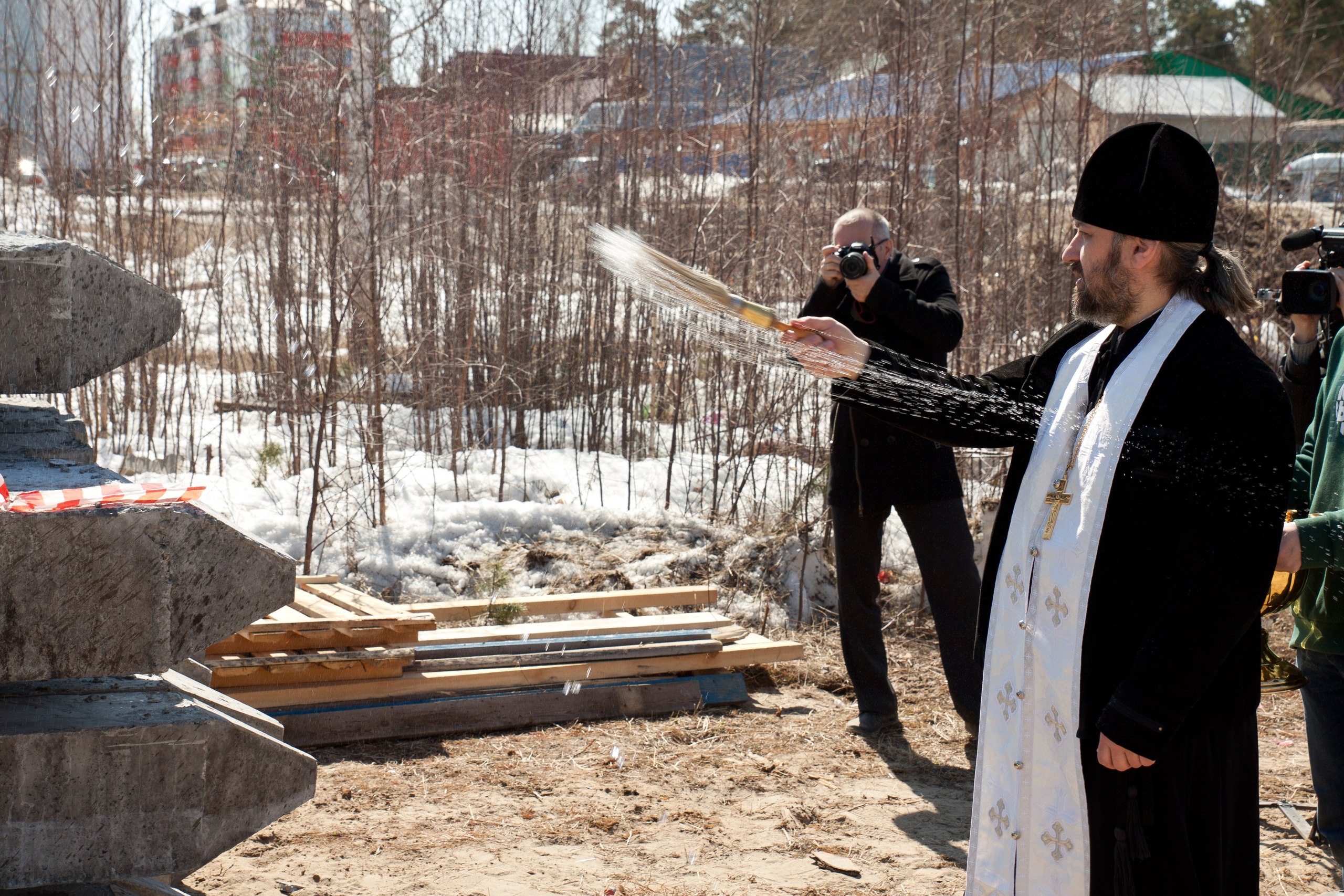 Настоятель храма преподобного Серафима Саровского протоиерей Георгий совершил чин на начало доброго дела и освятил строительную площадку. После этого была забита первая свая.