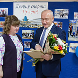 Сегодня коллектив Дворца спорта отметил 15-летие со дня официального открытия в городе этого учреждения. Юбиляра поздравили глава территории Сергей Маненков