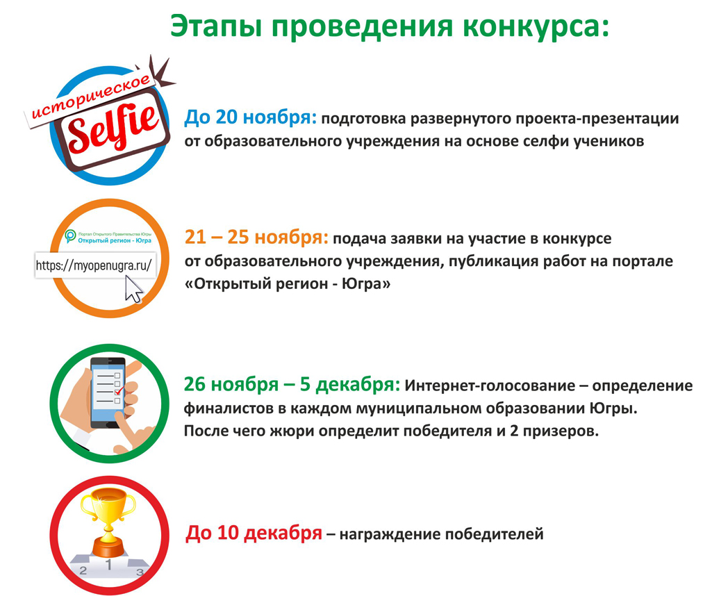 Молодым югорчанам от 6 до 23 лет предлагают сделать селфи на фоне какого-либо исторического памятника (события) и разработать проект, рассказывающий о том, почему участники испытывают гордость за историческое наследие родного края.
