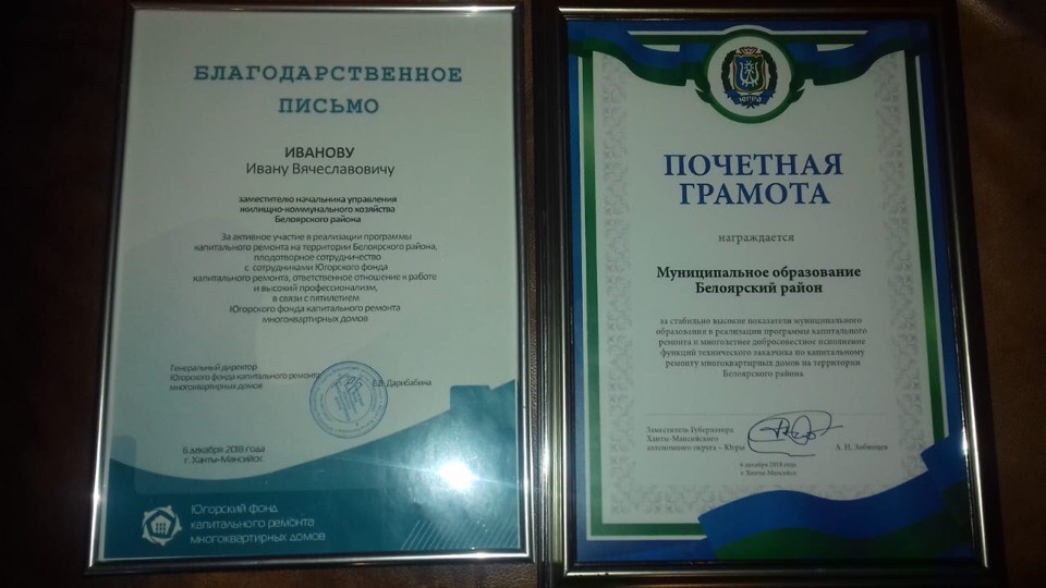 Сразу три награды получил Белоярский район в рамках празднования 5-летия Югорского фонда капитального ремонта многоквартирных домов.