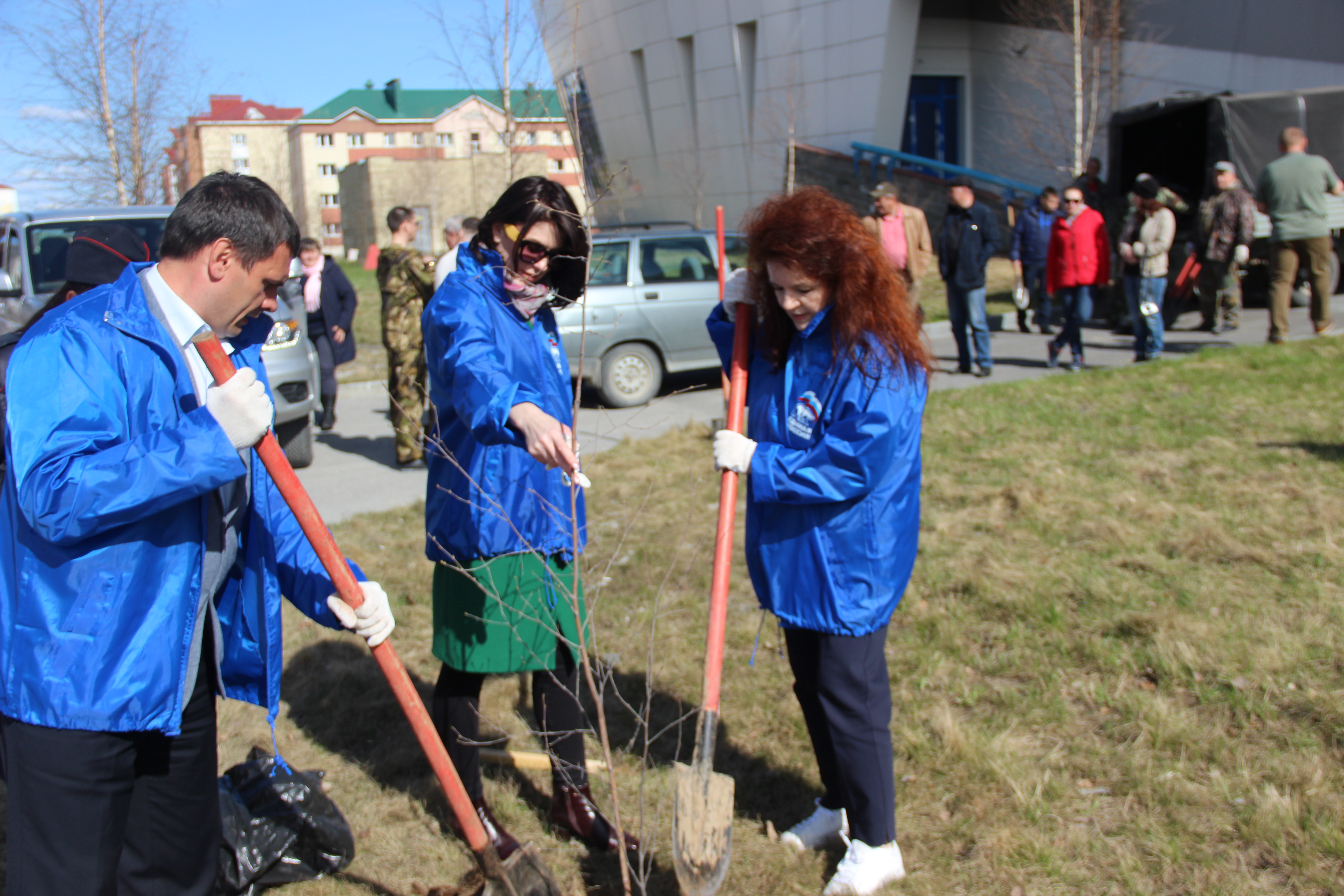 Сегодня в Белоярском у Дворца спорта высадили порядка 35 саженцев березы. В посадках участвовали служба авиалесоохраны, природный парк «Нумто», лесничество и представители других организаций.