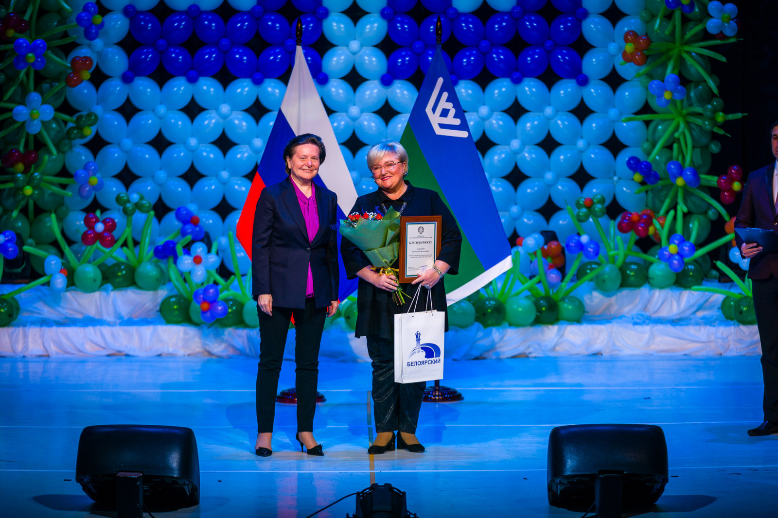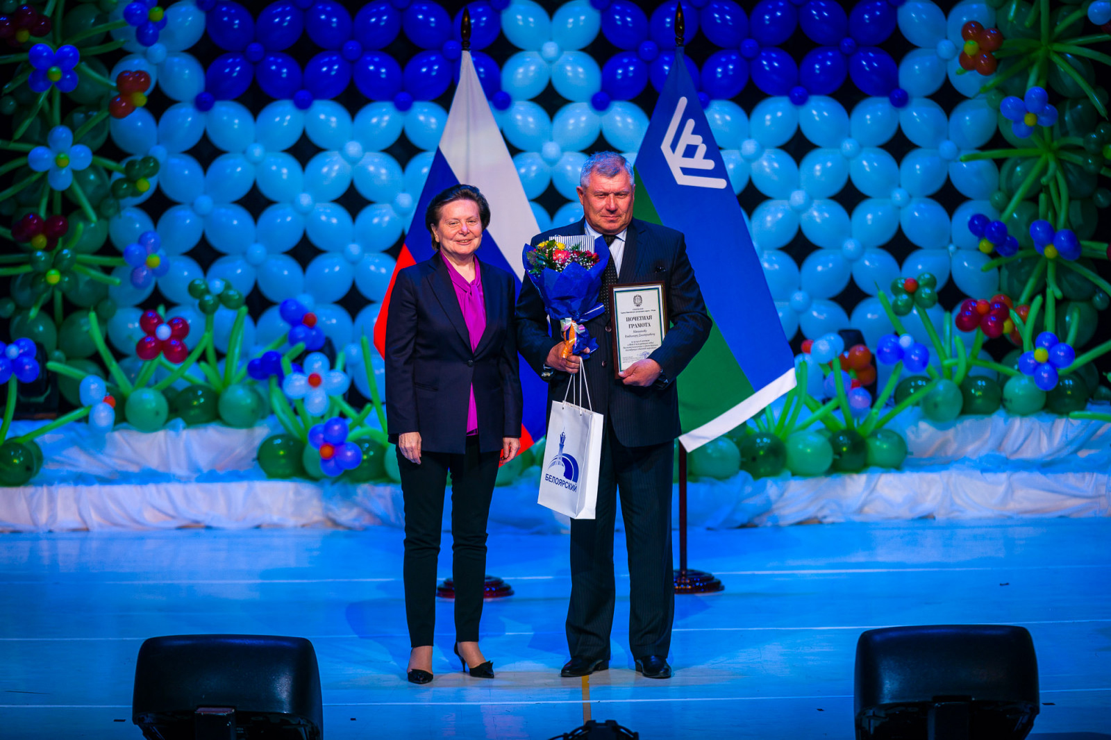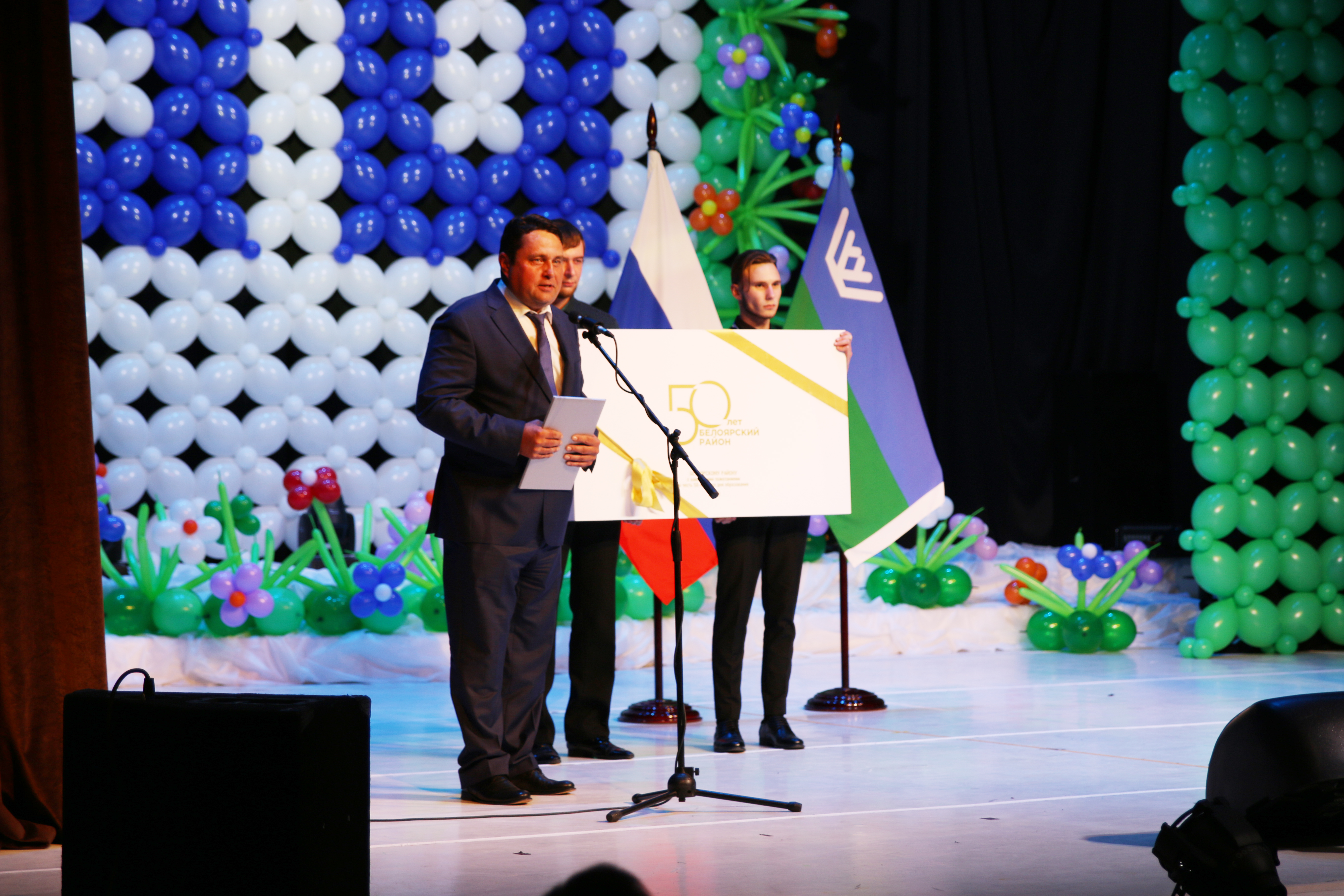 На торжественном собрании присутствовали губернатор Ханты-Мансийского автономного округа – Югры Наталья Комарова, первая женщина-космонавт Валентина Терешкова, депутат Государственной Думы Леонид Симановский, а также представители духовенства, парламентарии Тюменской области и региона, руководители ресурсодобывающих компаний, первые лица соседних муниципалитетов и, конечно же, старожилы, почетные граждане Белоярского района.