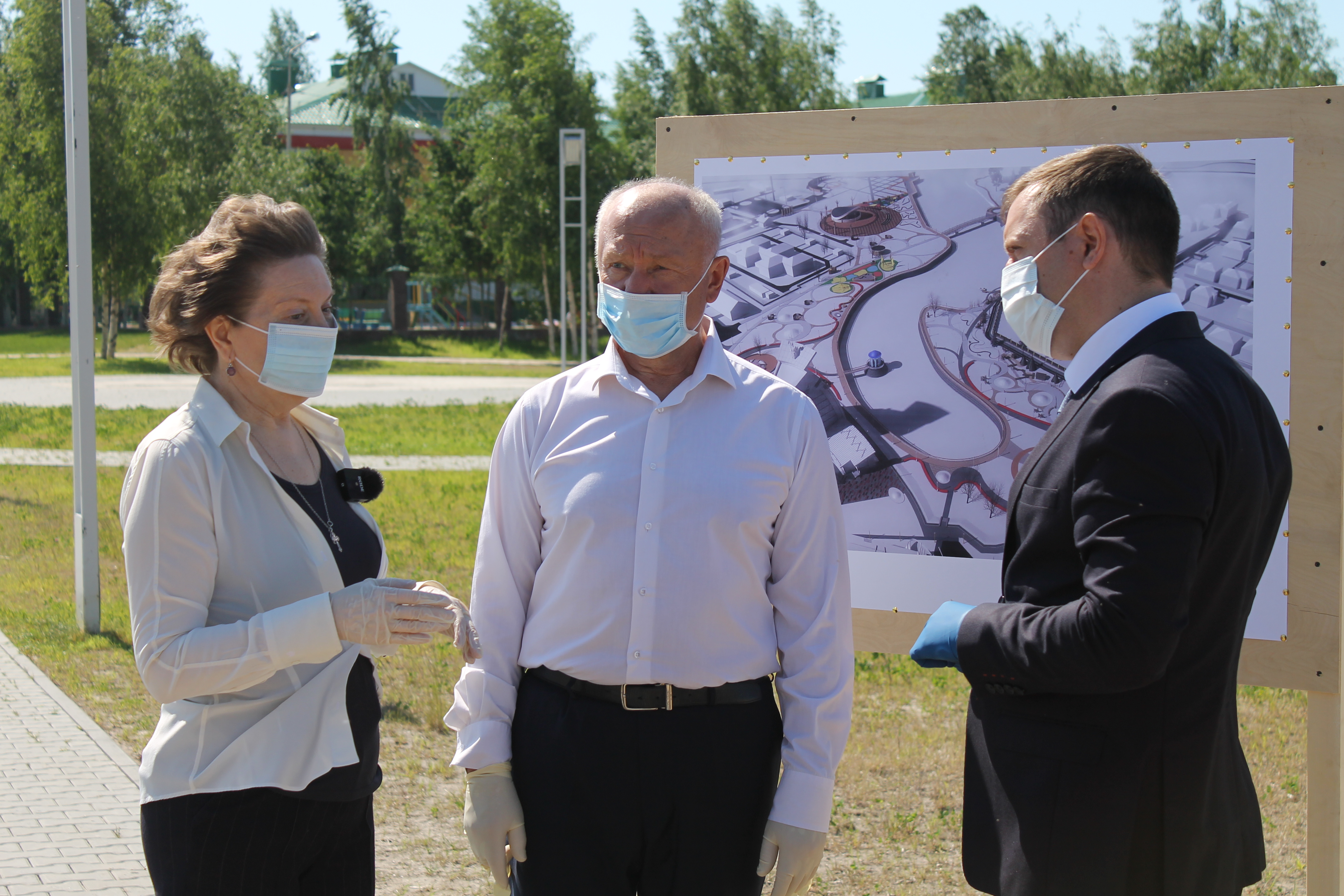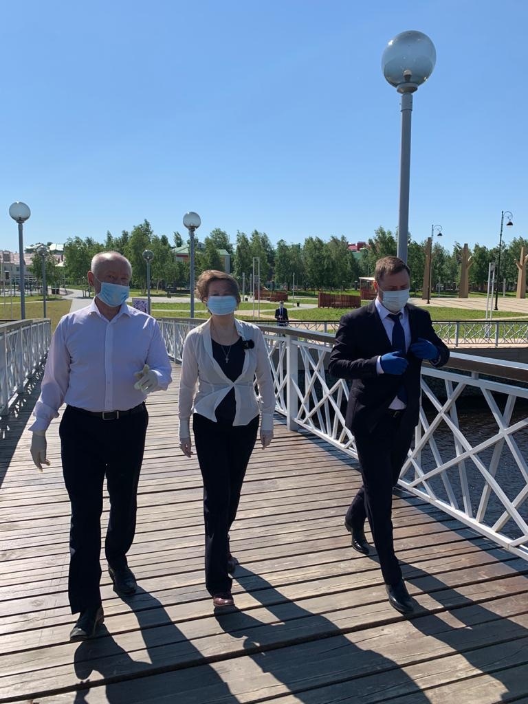 Большой фронт работ нынешним летом на новой набережной. Сергей Маненков и руководитель подрядной организации УМП «УПТК» Петр Малаев рассказали главе региона о нескольких оригинальных решениях реализуемого здесь проекта. Один из них – «беличья тропа», которую уже начали возводить. Другой – этнодеревня за Этнокультурным центром. Здесь, кстати, расположится еще одна скульптура – полярная сова с девятиметровым размахом крыльев.