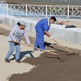 На объекте состоялась встреча с подрядчиками. Сергею Маненкову представили отчет о текущей работе. Руководитель УМП «УПТК» Петр Малаев рассказал, что проект уже вышел на финишную прямую. Здесь идет устройство прогулочных зон из трех видов покрытия – брусчатка, асфальтобетон и террасная доска. Работают и над устройством газонов. Вся новая зона станет стилистическим продолжением первого и второго этапов набережной.