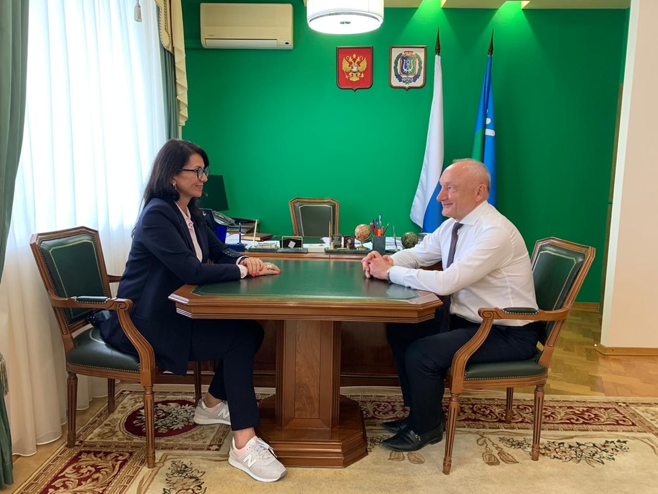 Перед началом заседания Сергей Маненков провел встречу с заместителем исполнительного директора АНО «Центр по реализации национальных проектов» в Югре Еленой Фищук, которая прибыла в Белоярский с рабочим визитом. Она приняла участие и в совещании, где обсудили показатели, по которым формируется оценка индекса качества городской среды, а также перспективы роста.