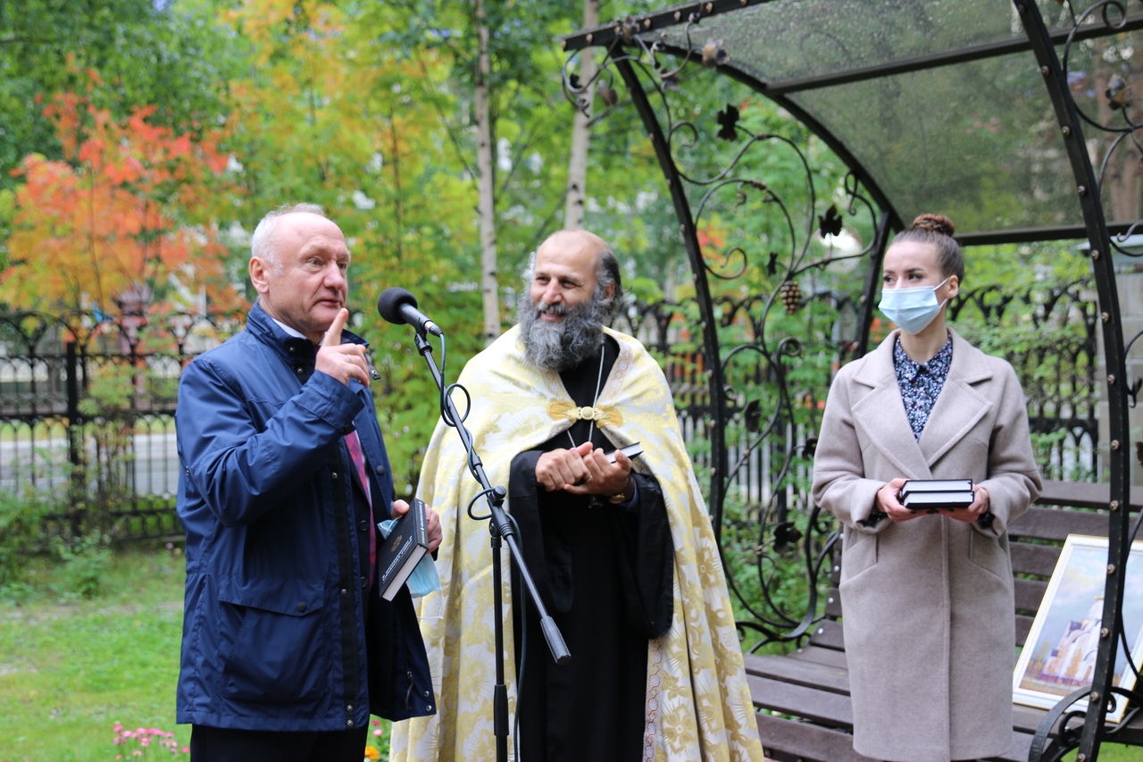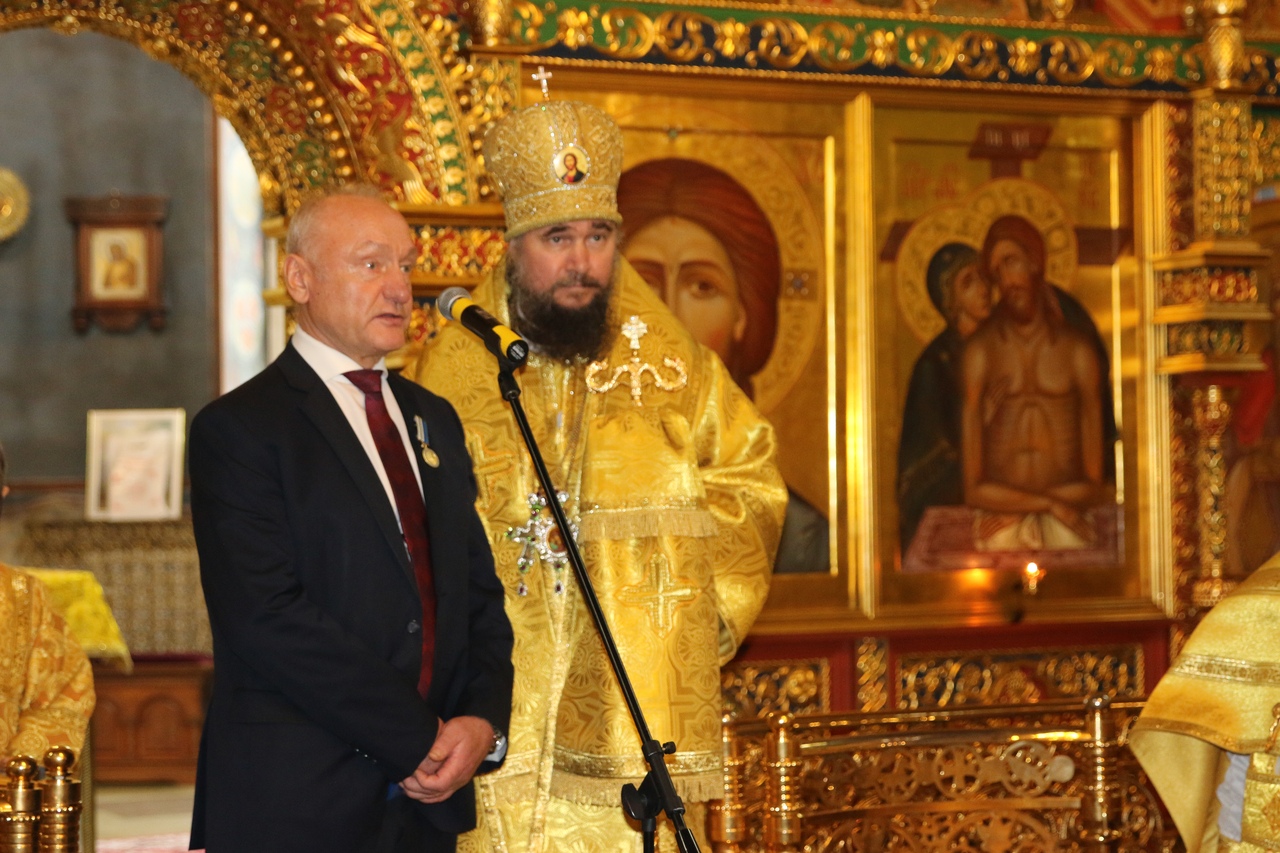 Установка и освящение креста состоялись после утреннего богослужения в храме преподобного Серафима Саровского, которое было совершено архиерейским чином. После завершения литургии епископ Югорский и Няганский Фотий, пребывающий в эти дни в Белоярском, вручил главе муниципалитета Сергею Маненкову медаль Югорской епархии I степени «За усердные труды на благо Югорской епархии». Владыка напомнил, что в этом году Югорской епархии исполнилось пять лет. На начальном сложном этапе ее становления большую помощь и поддержку оказал Сергей Маненков, и продолжает помогать по сей день. "Искренне благодарю вас за те труды, которые вы принесли", — сказал Его Преосвященство.