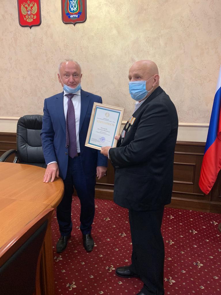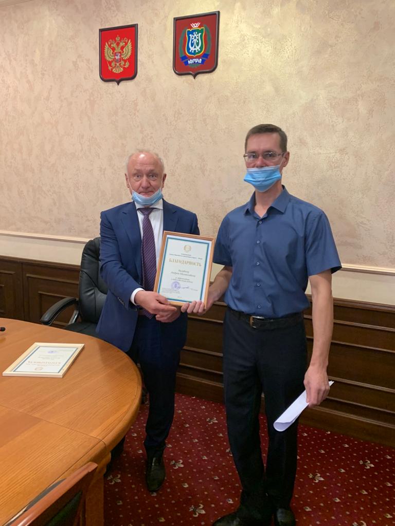 Сегодня на аппаратном совещании глава Белоярского района Сергей Маненков вручил три Почетные грамоты Губернатора Югры нашим землякам: за профессиональные достижения, - Геннадию Макееву; за эффективную и добросовестную работу, - Андрею Халявину и за достижения в общественной деятельности, - Виктору Молчанову.