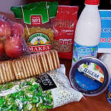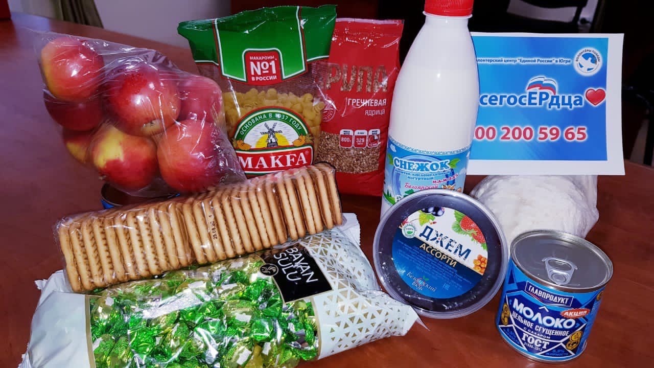 На собранные деньги были сформированы продуктовые наборы. Помимо продуктов первой необходимости в них вошли сладости и фрукты, а также свежая продукция местного завода: творог, напиток «Снежок», джем.
