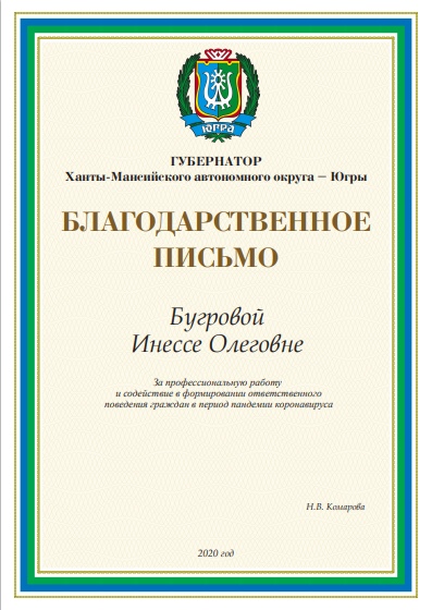 Глава территории рассказал о событии на личной страничке в Инстаграм. "Принял участие в онлайн-встрече Губернатора округа с победителями окружных, федеральных конкурсов профессионального мастерства, редакциями СМИ региона, победителями конкурса грантов на реализацию информационных проектов XIV окружного форума «Информационный мир Югры", — написал Сергей Маненков. — С радостью вручил благодарственное письмо Губернатора Югры заместителю директора информационного центра «Квадрат» Бугровой Инессе Олеговне за профессиональную работу и содействие в формировании ответственного поведения граждан в период пандемии коронавируса.