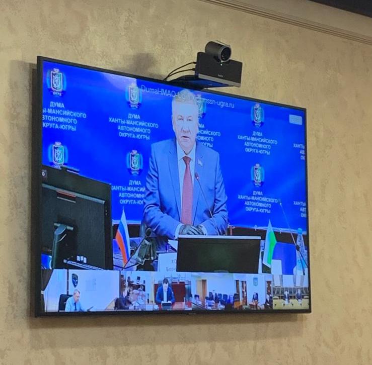 В заседании окружной Думы приняли участие онлайн глава Белоярского района Сергей Маненков и председатель районной Думы Андрей Берестов.