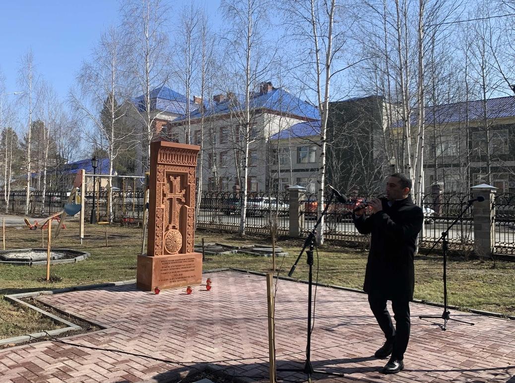Глава Белоярского района, представители армянской диаспоры, духовенство, общественники собрались сегодня у поклонного креста — хачкара, установленного во дворе храма преподобного Серафима Саровского.