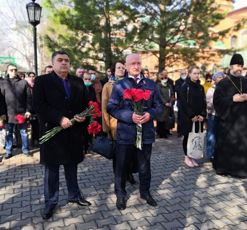 После возложения цветов собравшиеся почтили память невинных жертв геноцида минутой молчания.