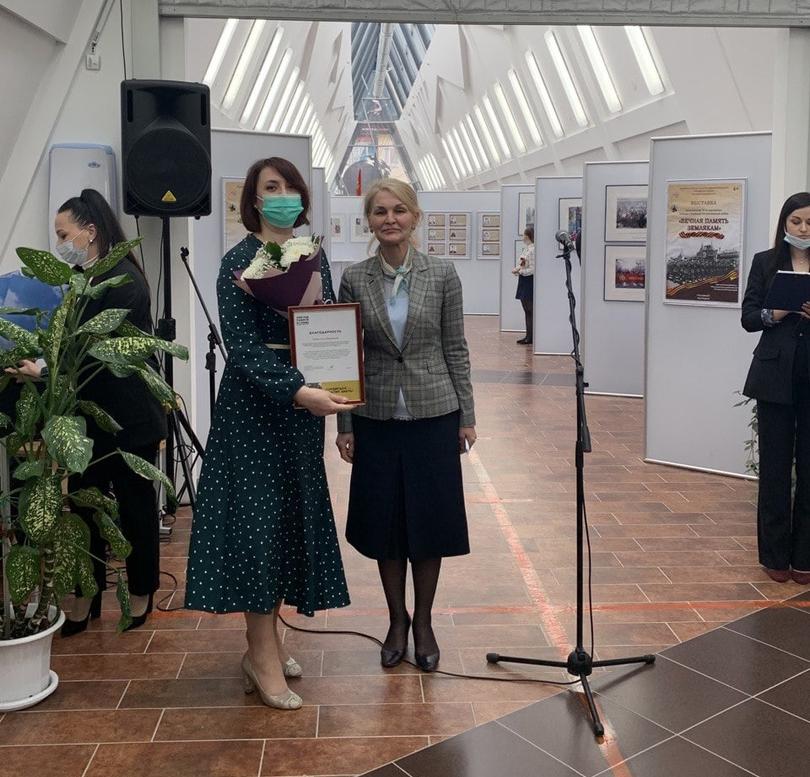 Вера Аркадьевна вручила ряд наград от Департамента культуры, от дирекции Года памяти и славы и участникам регионального этапа Международного конкурса «Письмо солдату. Победа без границ», посвященного 76-ой годовщине Великой Победы.