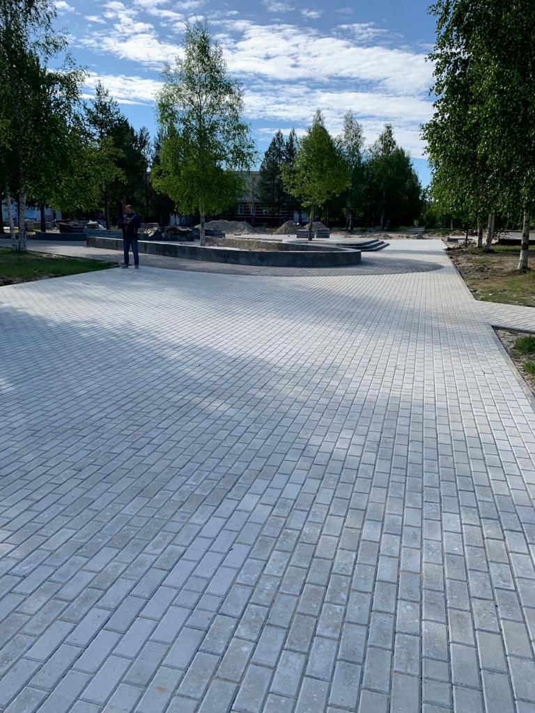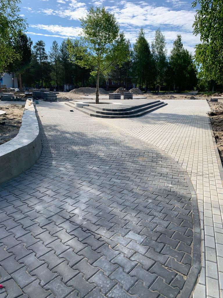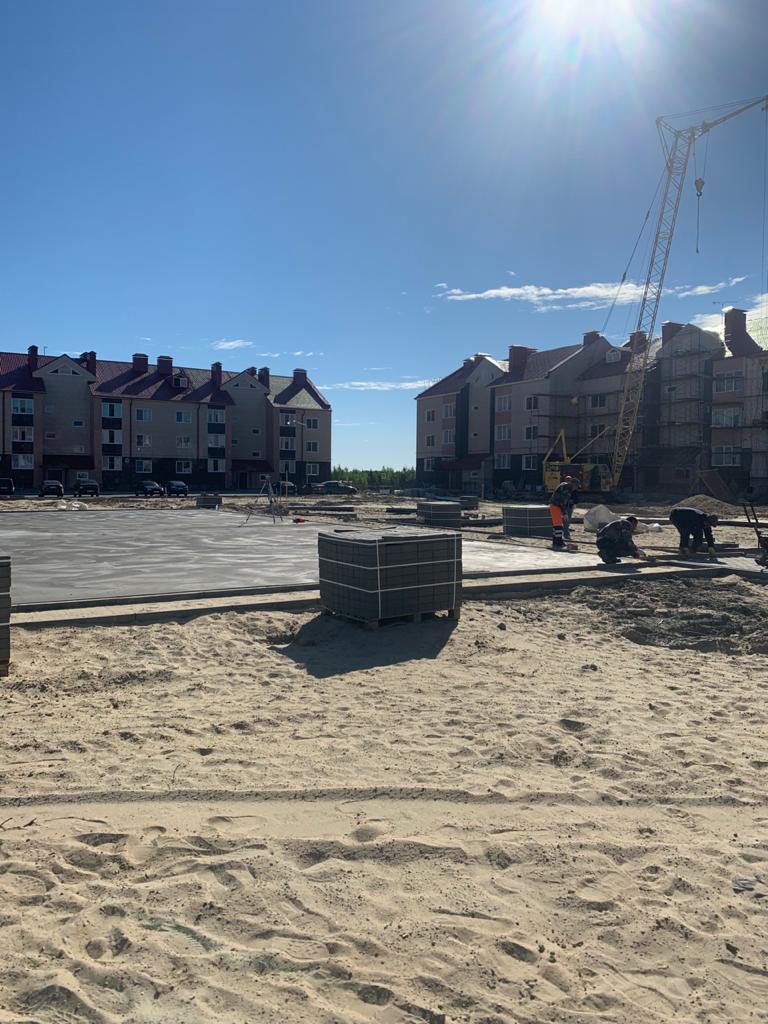 Во дворах жилых домов №12,13,14,17,18,20,28а,29 в 3 микрорайоне ведутся работы по устройству новых тротуаров, устройство основания из бетона под детские игровые площадки, устройство площадки под ТКО