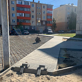 Во дворах домов №24,25,26,27,28 в 1 микрорайоне ведутся работы по устройству новых тротуаров, устройство основания под детские игровые площадки.
