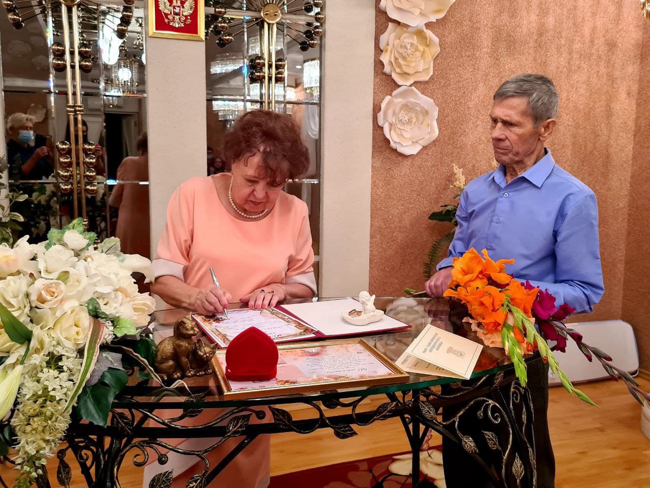 Как и 50 лет назад супруги пришли в ЗАГС, чтобы поставить подписи, но теперь уже в книге почетных юбиляров.