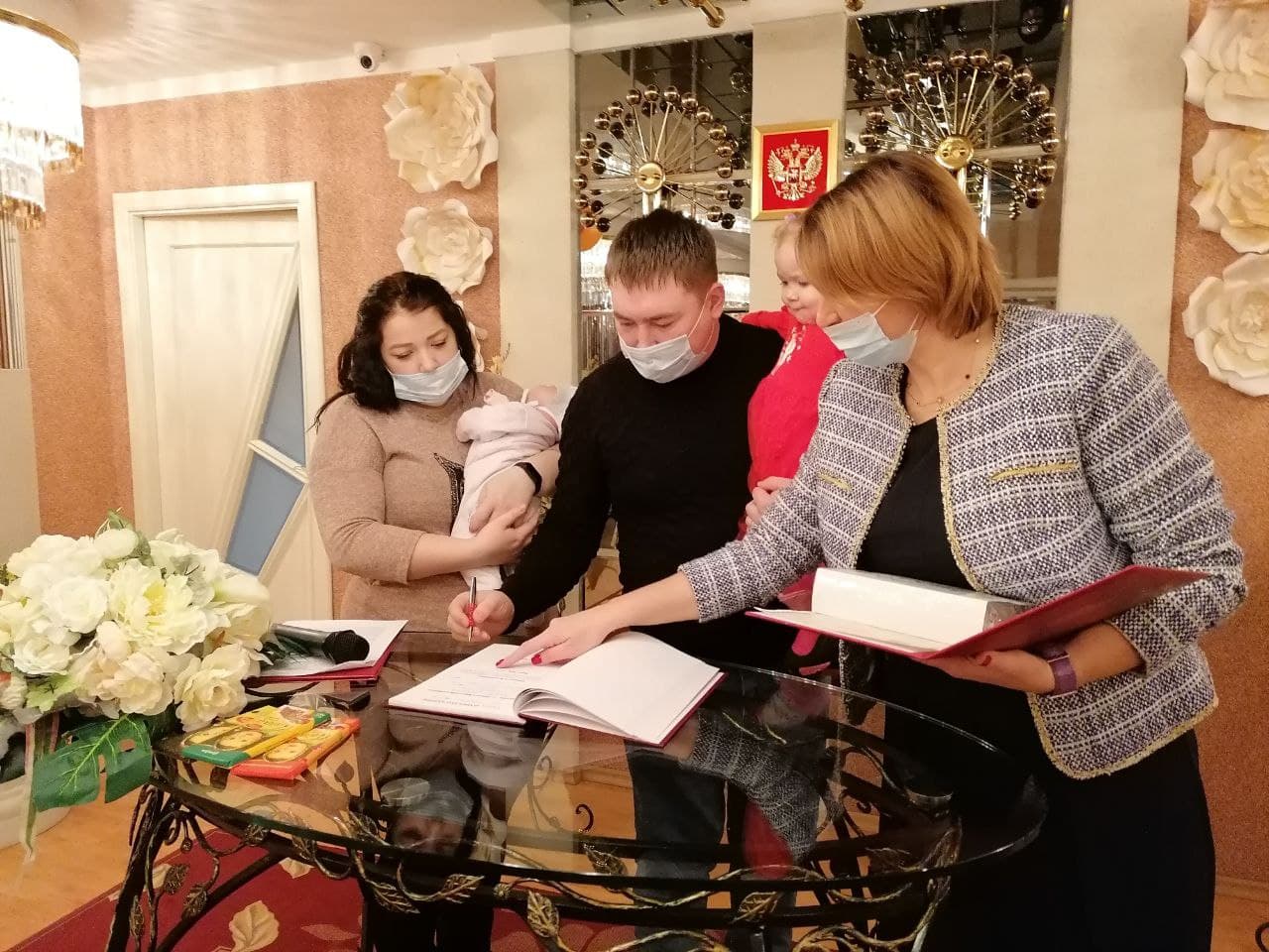 В отделении ЗАГС прошла торжественная церемония имянаречения новорожденной Доминики Вокуевой.