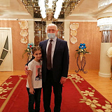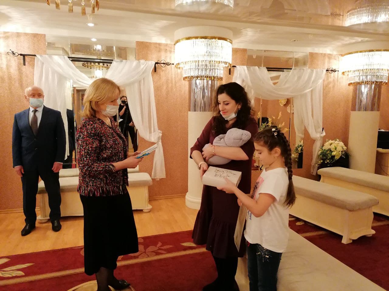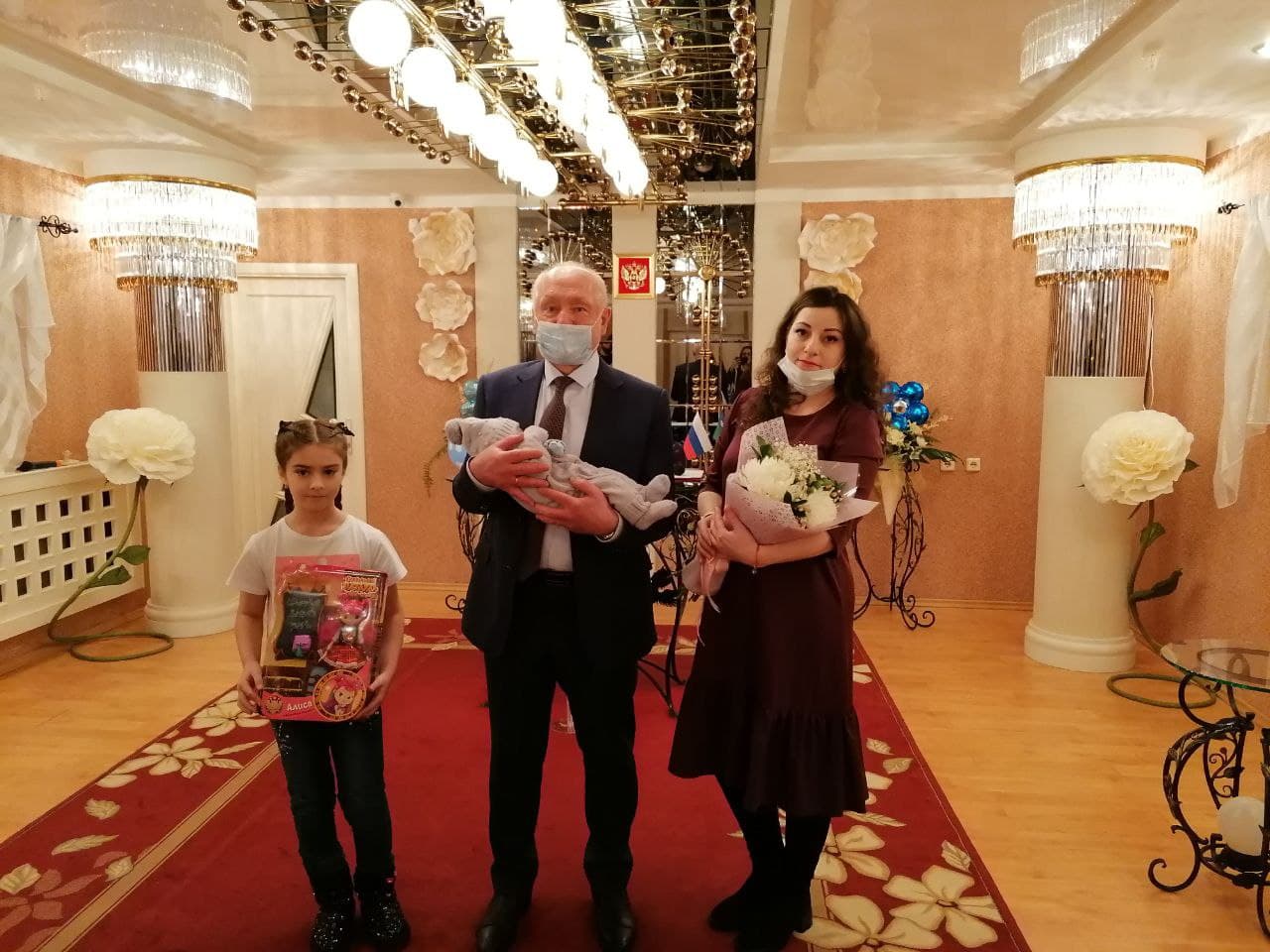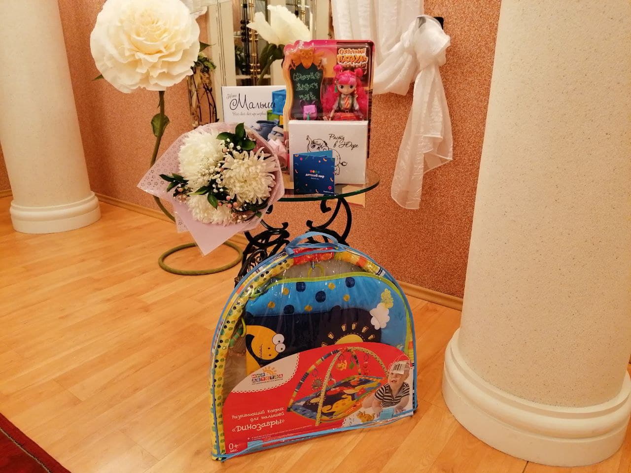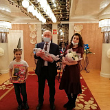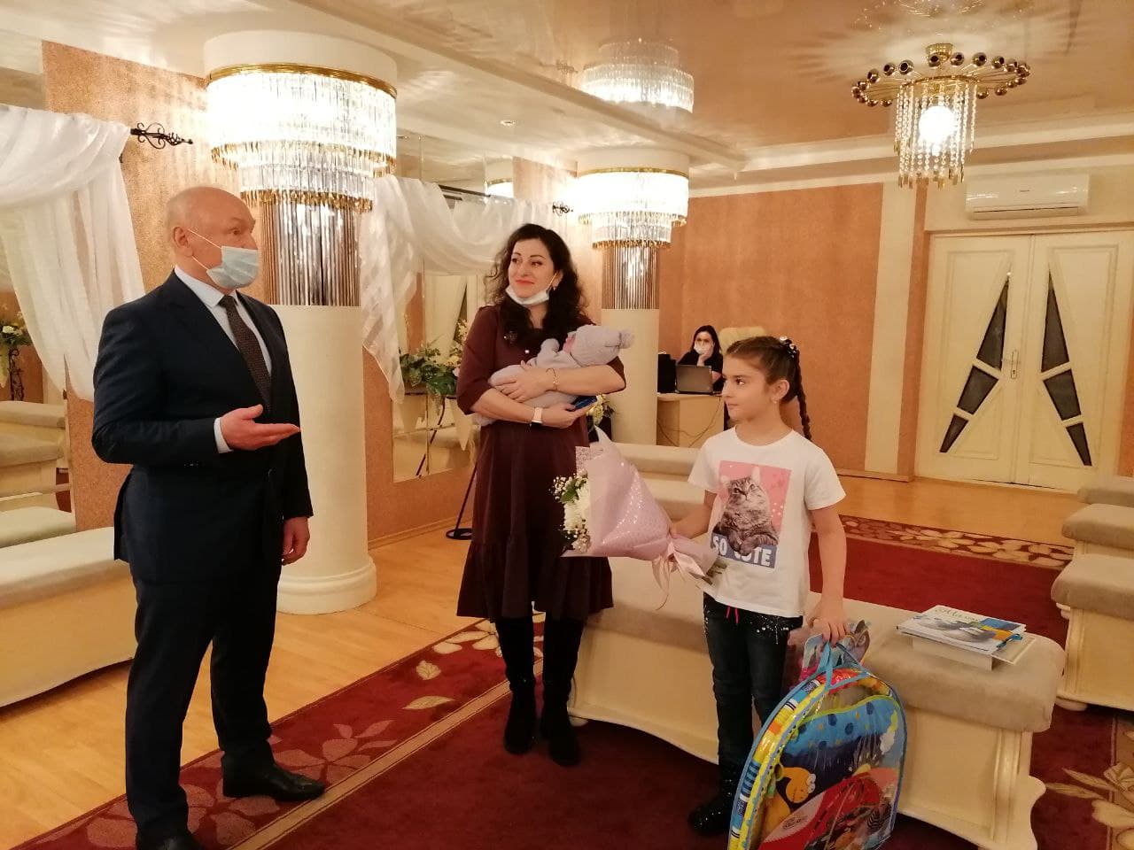 На память о ярком событии Сергей Маненков вручил подарочный сертификат в магазин «Детский мир» и развивающий коврик для малыша маме Альбине и куклу старшей сестре Ясмине. Пожелал Саиду и его близким здоровья, гармонии и счастливых моментов.