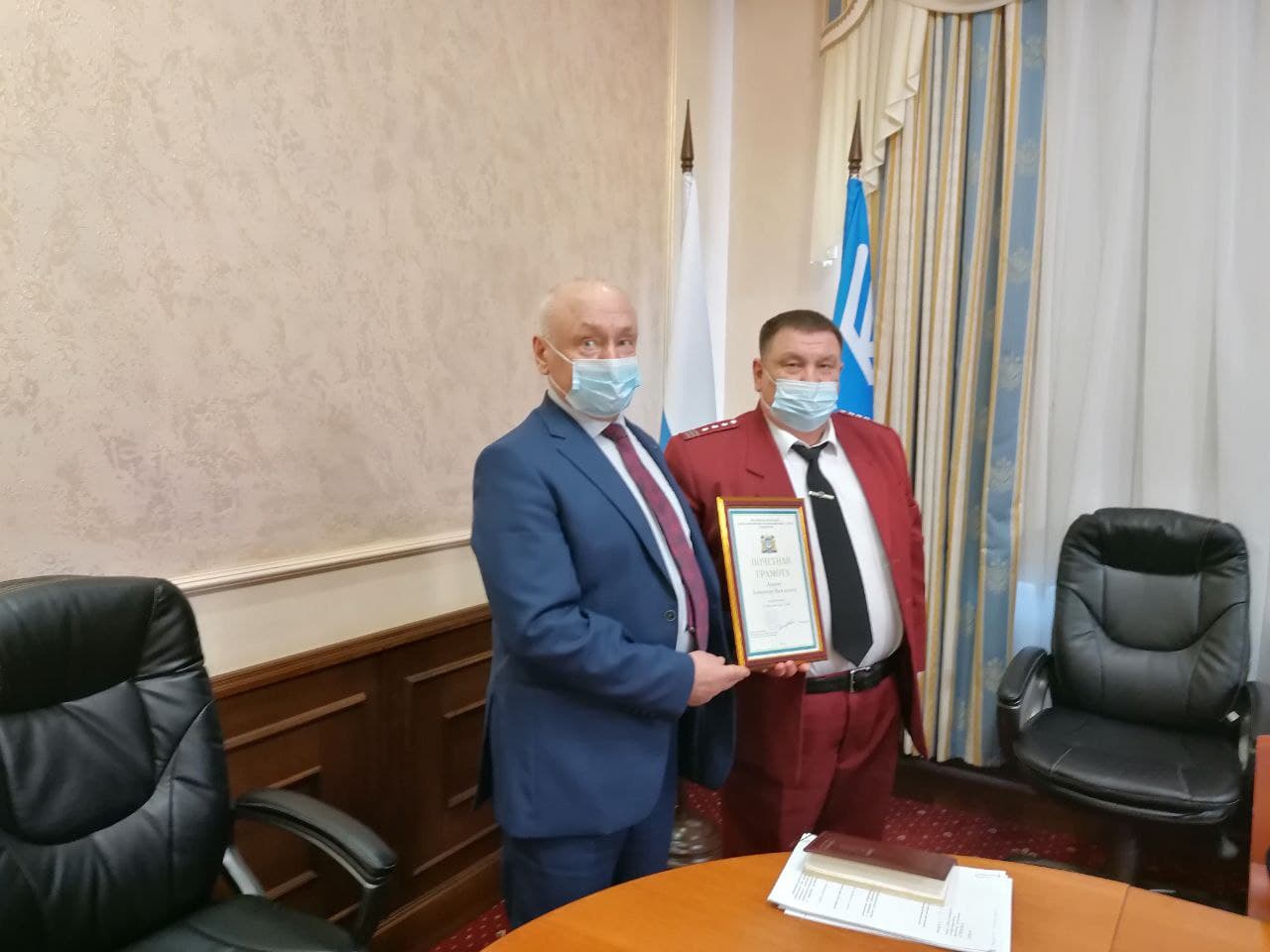 В начале заседания Сергей Маненков вручил Почетную грамоту Губернатора Югры Александру Азанову за многолетний и добросовестный труд, и Благодарственное письмо Председателя Думы округа Бориса Хохрякова Ольге Лысенко за активную общественную деятельность, реализацию социально значимых проектов и вклад в развитие добровольческой деятельности в Югре.