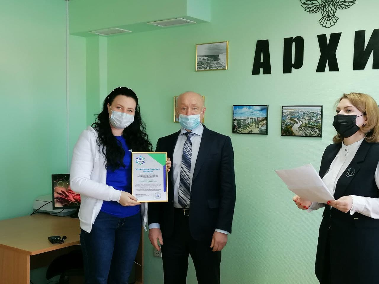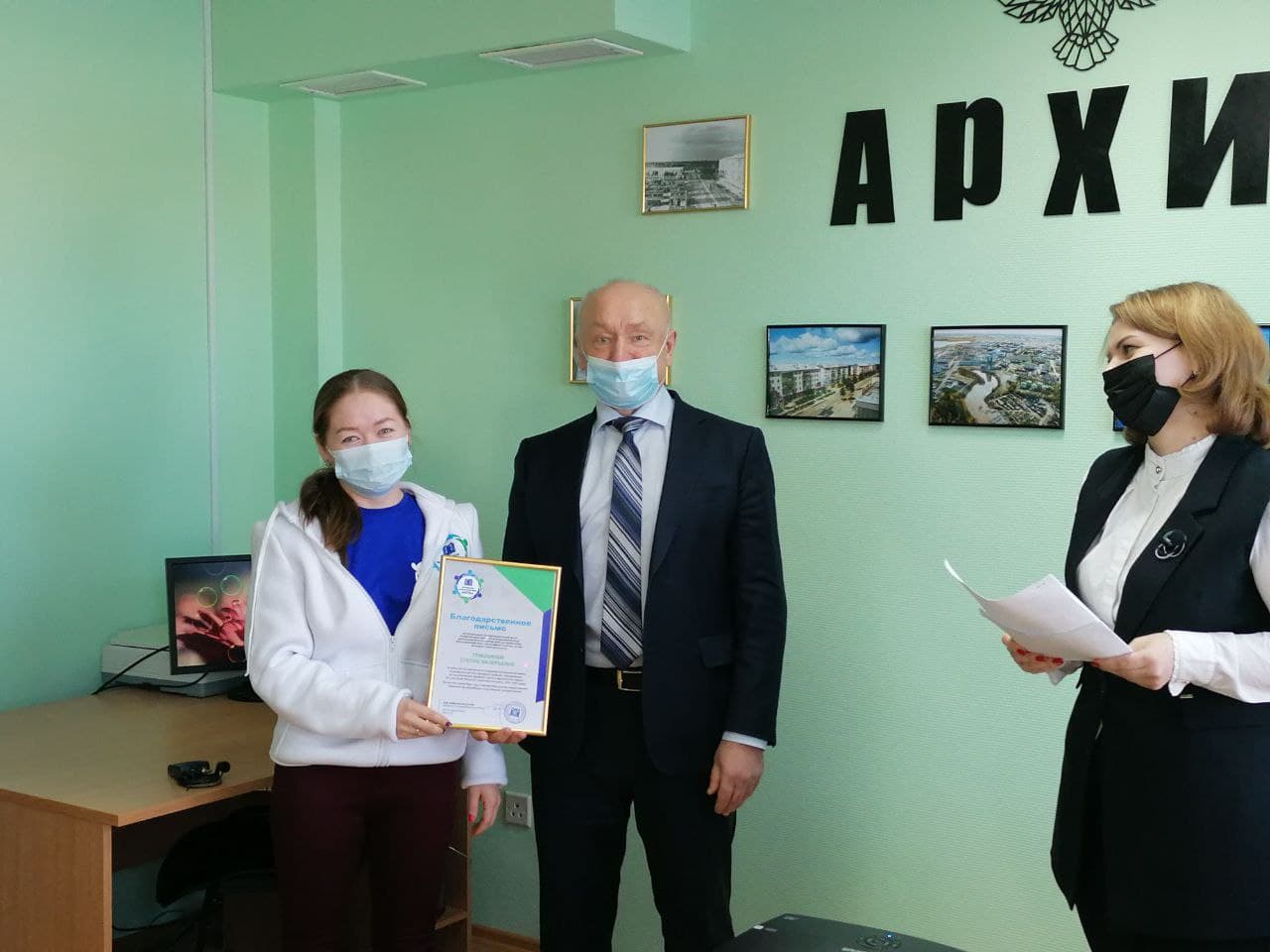 А также вручил Благодарственные письма регионального координационного центра развития архивного волонтерства на территории Югры Тришкиной Стелле за личный вклад в сохранении и увековечении памяти об участниках ВОВ и Макаровой Юлие за популяризацию архивного дела, вовлечения в исследовательскую деятельность школьников, участие исследовательской команды в международной премии #МЫВМЕСТЕ
