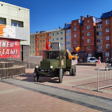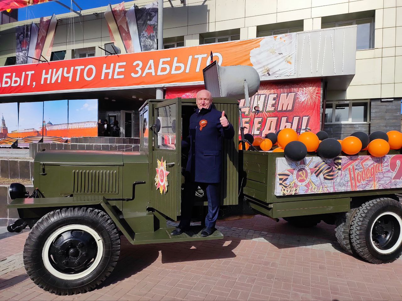 К автоколонне в городе присоединилась полуторка, которая стала во главе. Апофеозом мероприятия стало построение тематической фигуры из автомобилей в форме буквы V.