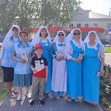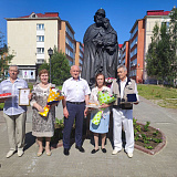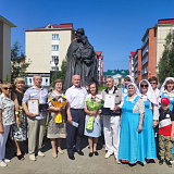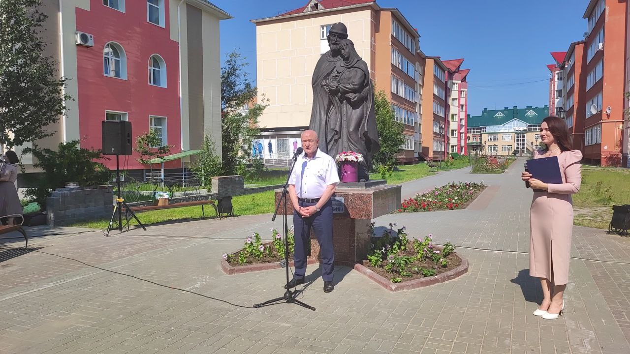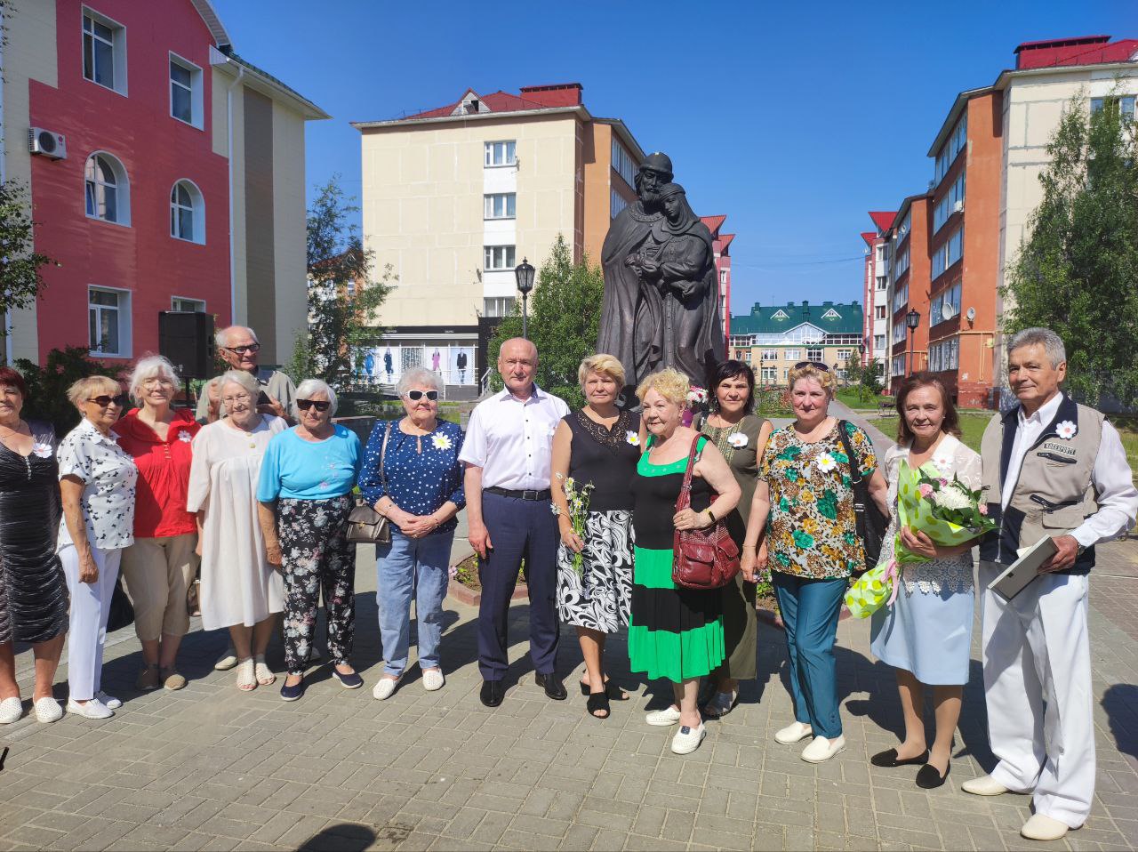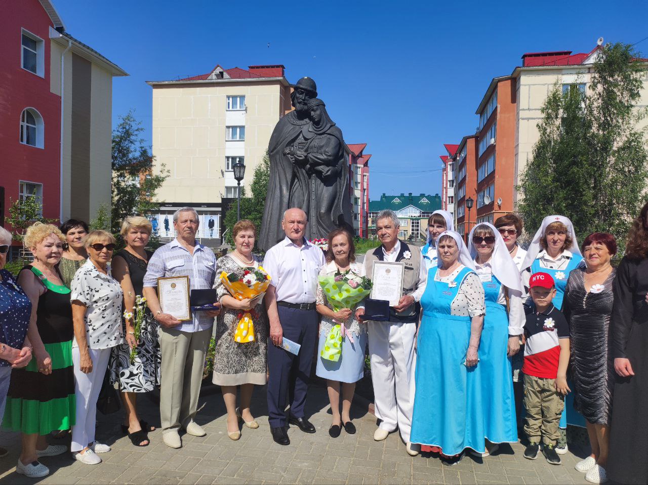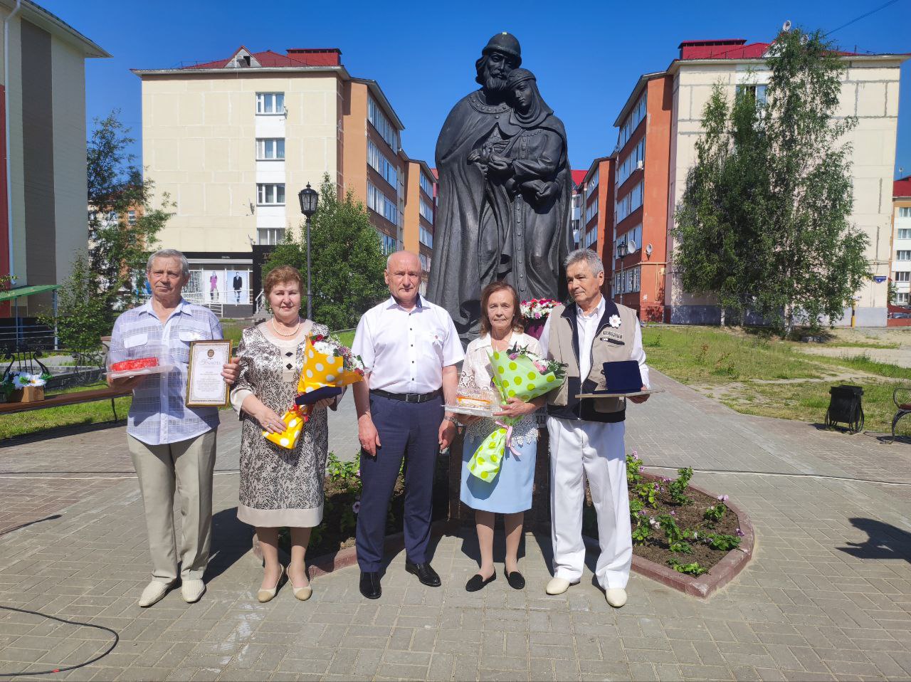 У памятника Петру и Февронии вместе с представителями храма преподобного Серафима Саровского, местной некоммерческой общественной организации «Союз православных женщин Белоярья» и местной общественной организации ветеранов войны и труда глава муниципалитета чествовал золотых юбиляров.