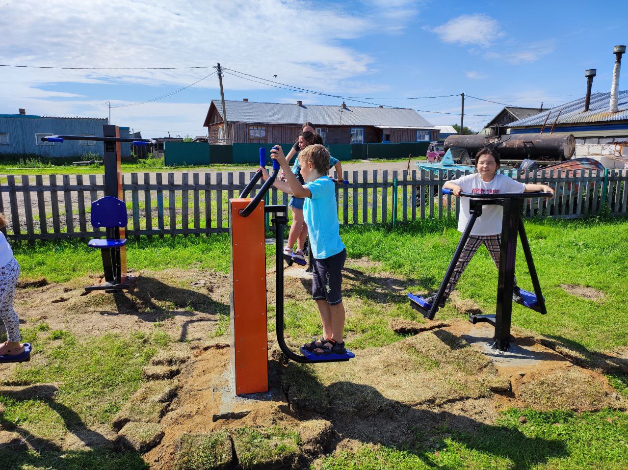 В подарок жителям села к юбилейному году установлены уличные тренажеры для занятий спортом.
