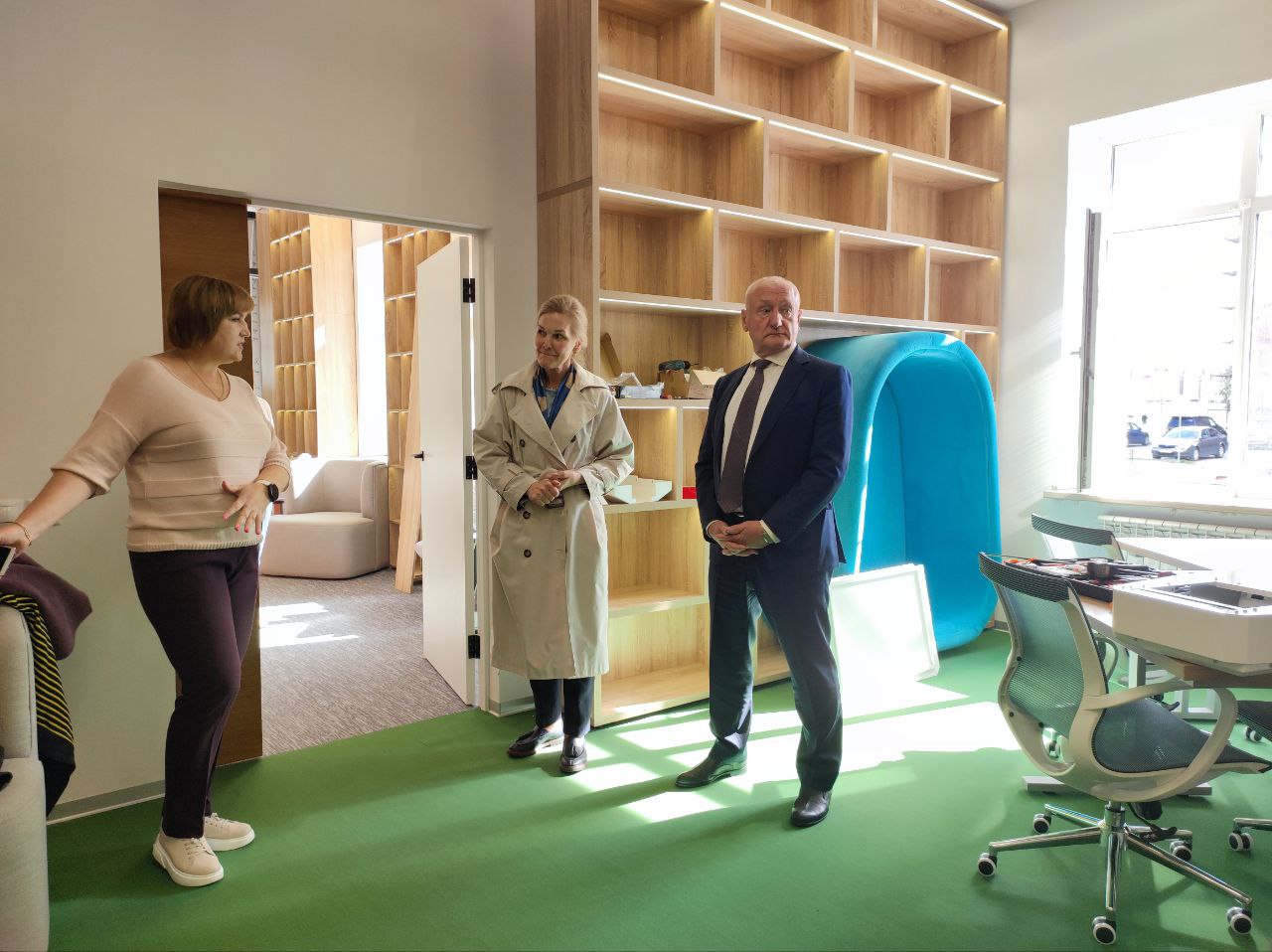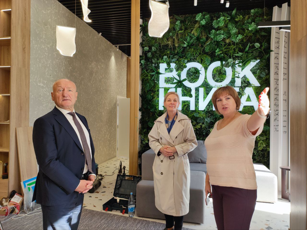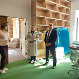 Сначала глава Белоярского района Сергей Маненков и Вера Аркадьевна осмотрели информационно-досуговый отдел Центральной библиотечной системы «Кластер», открытие которого намечено на 16 сентября этого года.