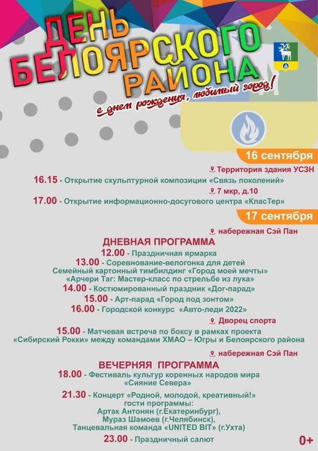 В честь Дня Белоярского района в городе запланирован ряд мероприятий, которые пройдут 16-17 сентября 2022 года