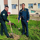 Глава муниципалитета вместе с коллегами принял участие в озеленении территории возле администрации Белоярского района, которая в этом году была благоустроена.