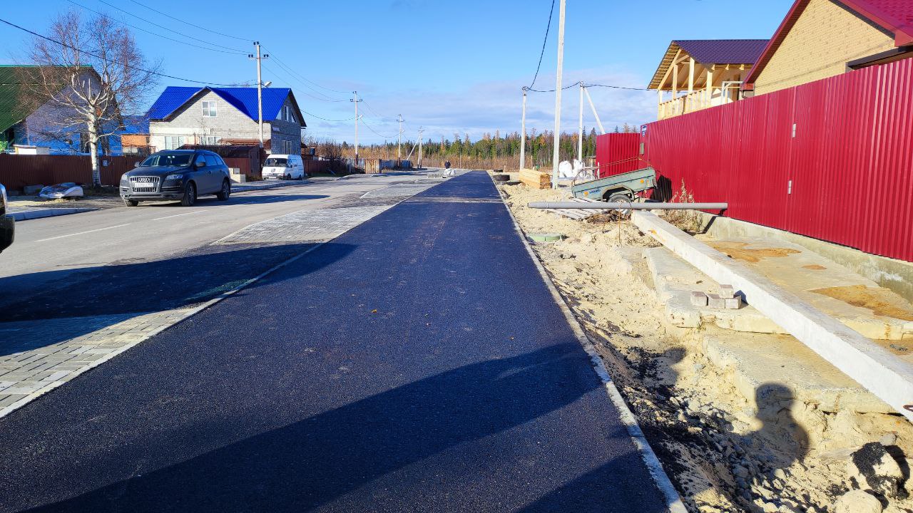 Завершаются работы по строительству дороги в 6 мкр-не. Уже выполнены асфальтобетонное покрытие, пешеходные связи, устройство ливневой канализации, ведутся работы по созданию первого в городе участка велосипедной дорожки.