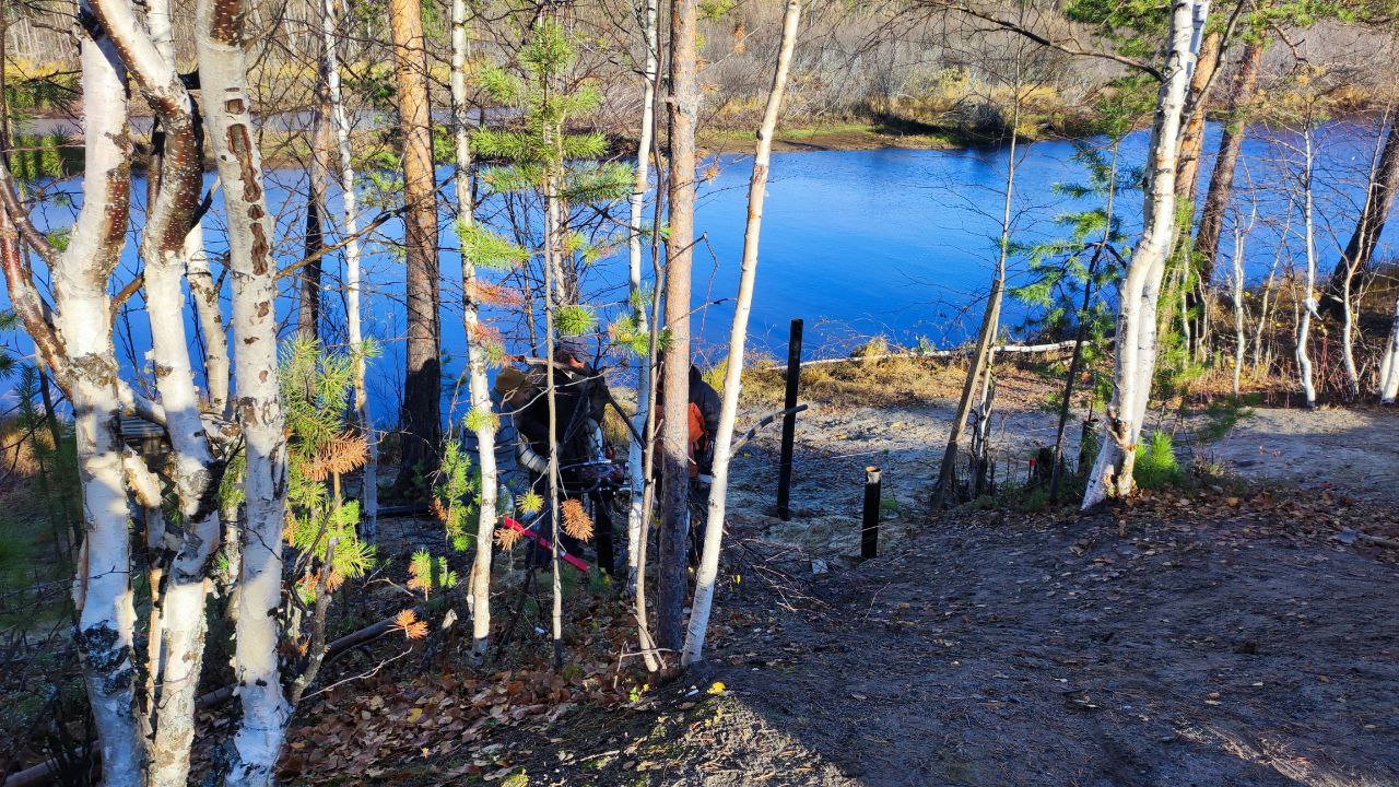 На Белой горке продолжаются работы по устройству дополнительной лыжероллерной трассы. Выполнена отсыпка полотна будущей трассы. Приступили к монтажу свайного основания пирса.