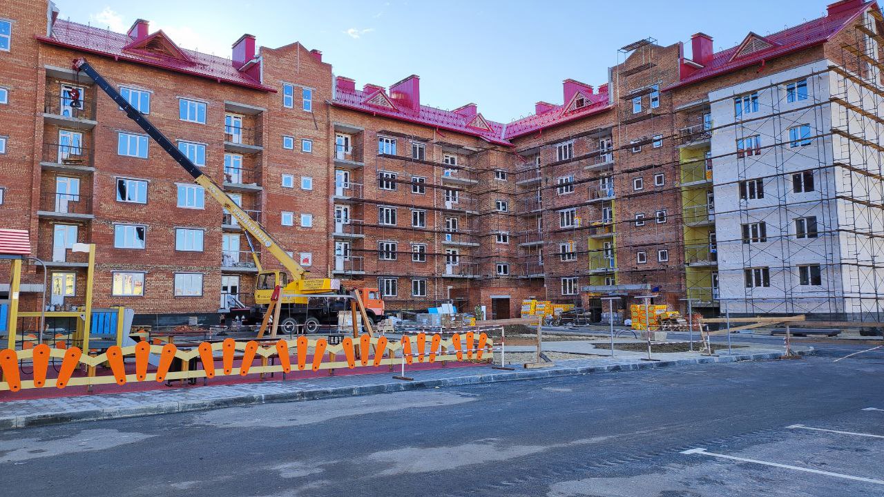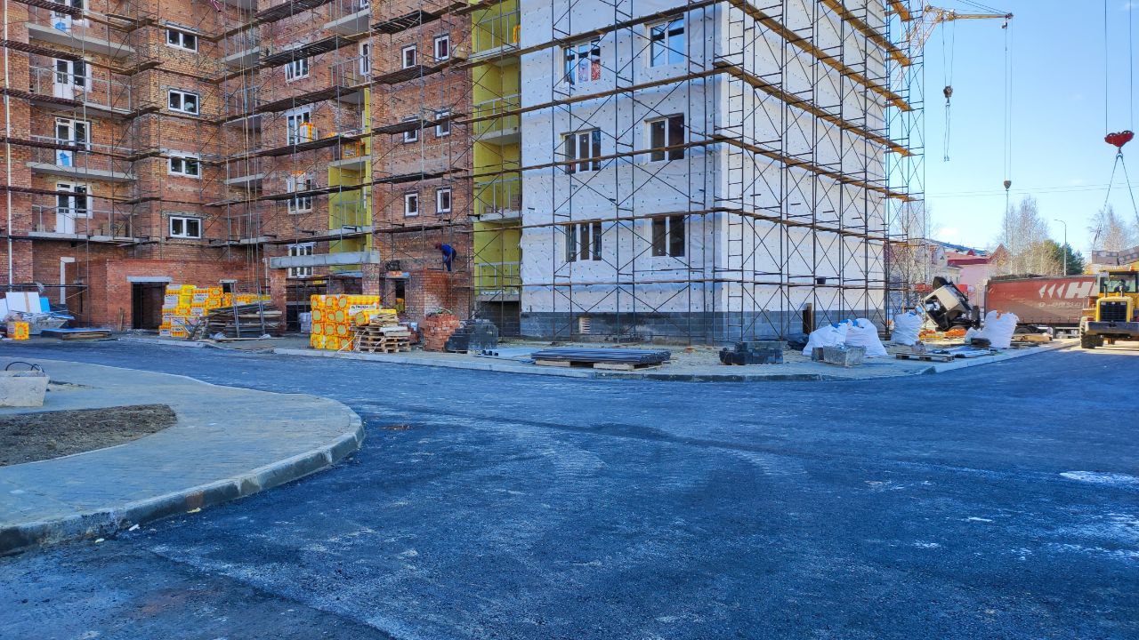 В 7 мкр-не дом 10 ведутся фасадные и внутренние отделочные работы. Продолжается устройство входных групп, благоустройство прилегающих территорий. Выполнили устройство асфальтобетонного покрытия внутридворовых проездов.