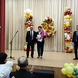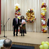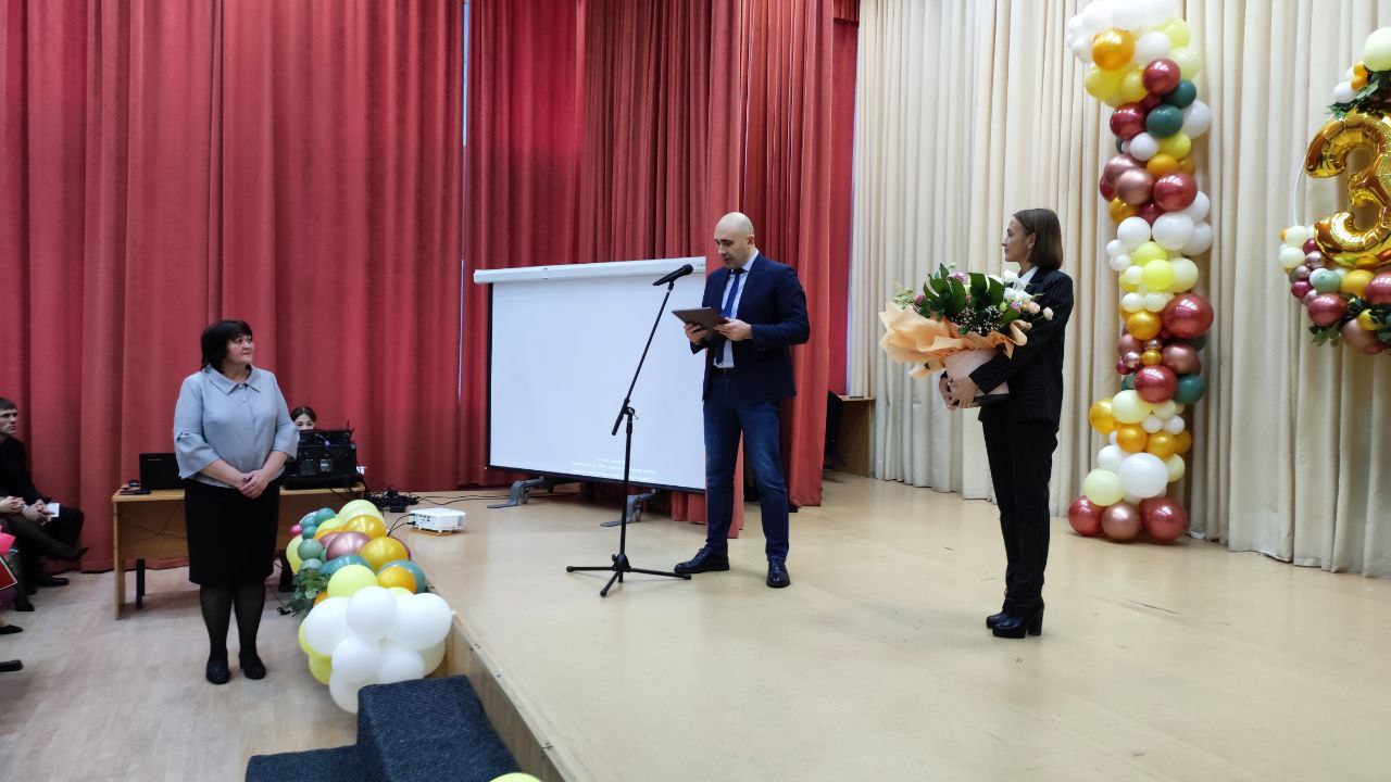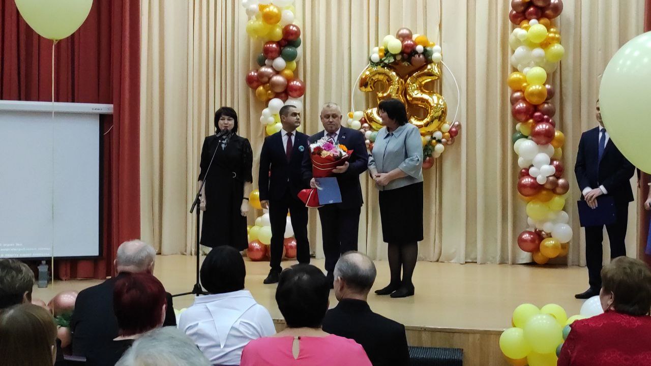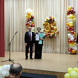 Сергей Маненков поздравил директора школы Турбар Людмилу и педагогический коллектив, ветеранов школы, учеников и выпускников, родителей с юбилеем учреждения. Вручил сертификат на 200 тысяч рублей для развития образовательного учреждения.